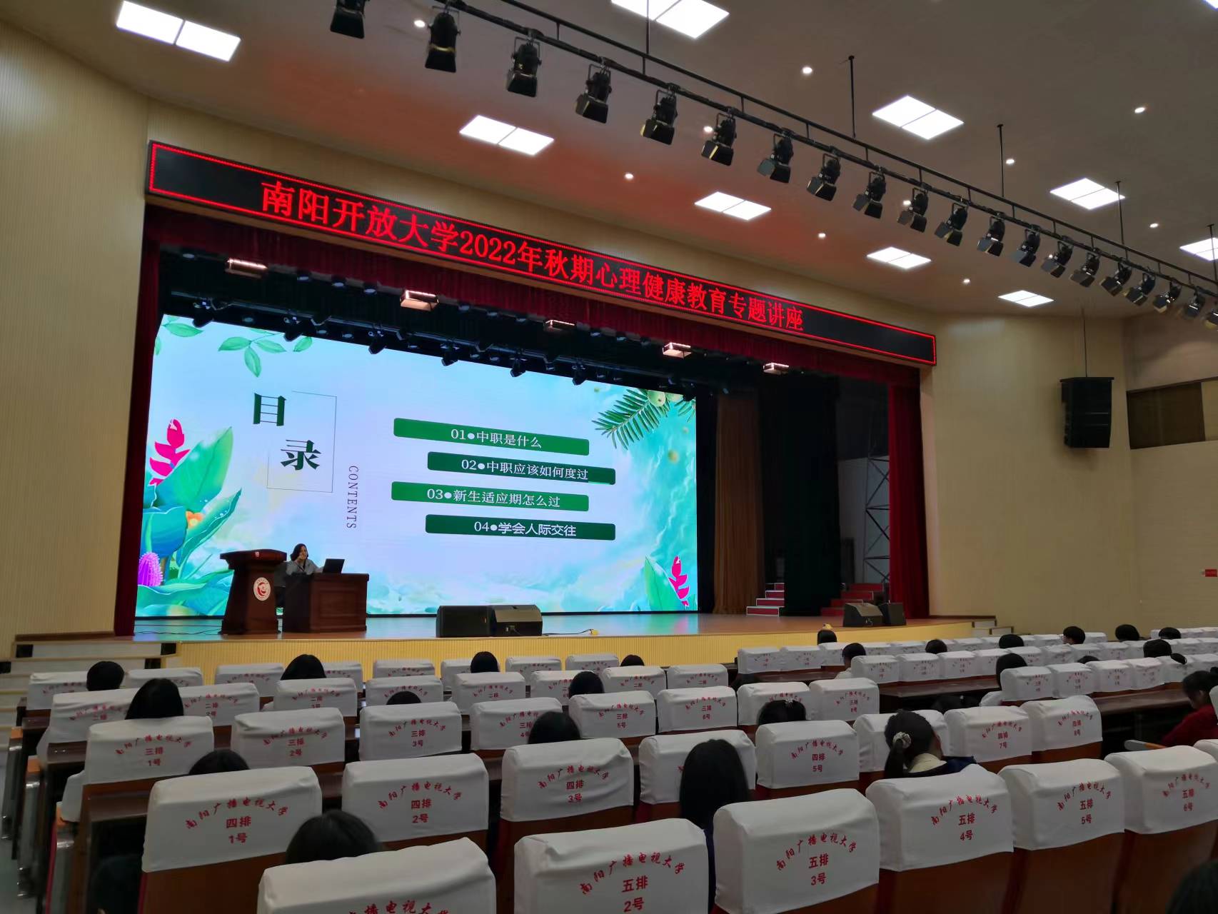 为了帮助2022级新生更好地适应新的学习和生活环境,提高学生的心理健康意识和心理调适能力,促进其身心健康成长。中专教育处分别在2022年10月11日、12日晚上,在学校大礼堂举行了全体新生的心理健康专题讲座。讲座邀请国家二级心理咨询师吕学丽老师主讲。