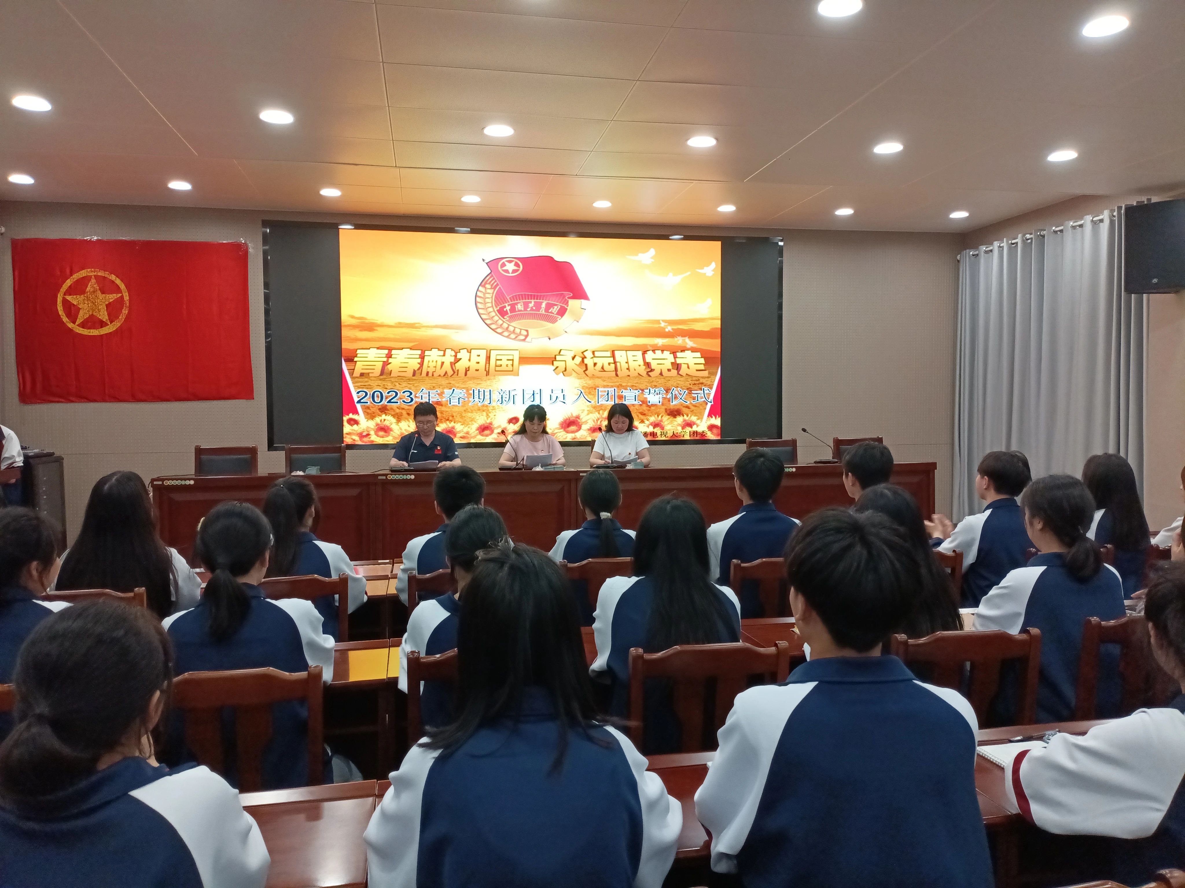 5月16日晚,我校在多功能厅举行南阳开放大学中职教育2023年春期新团员入团宣誓仪式。校团委书记、中专部主任段志东,中专部副主任郭英,团委副书记郭永利,团委专职老师韩立中,全体老团员和50名新团员共同参加了宣誓仪式。