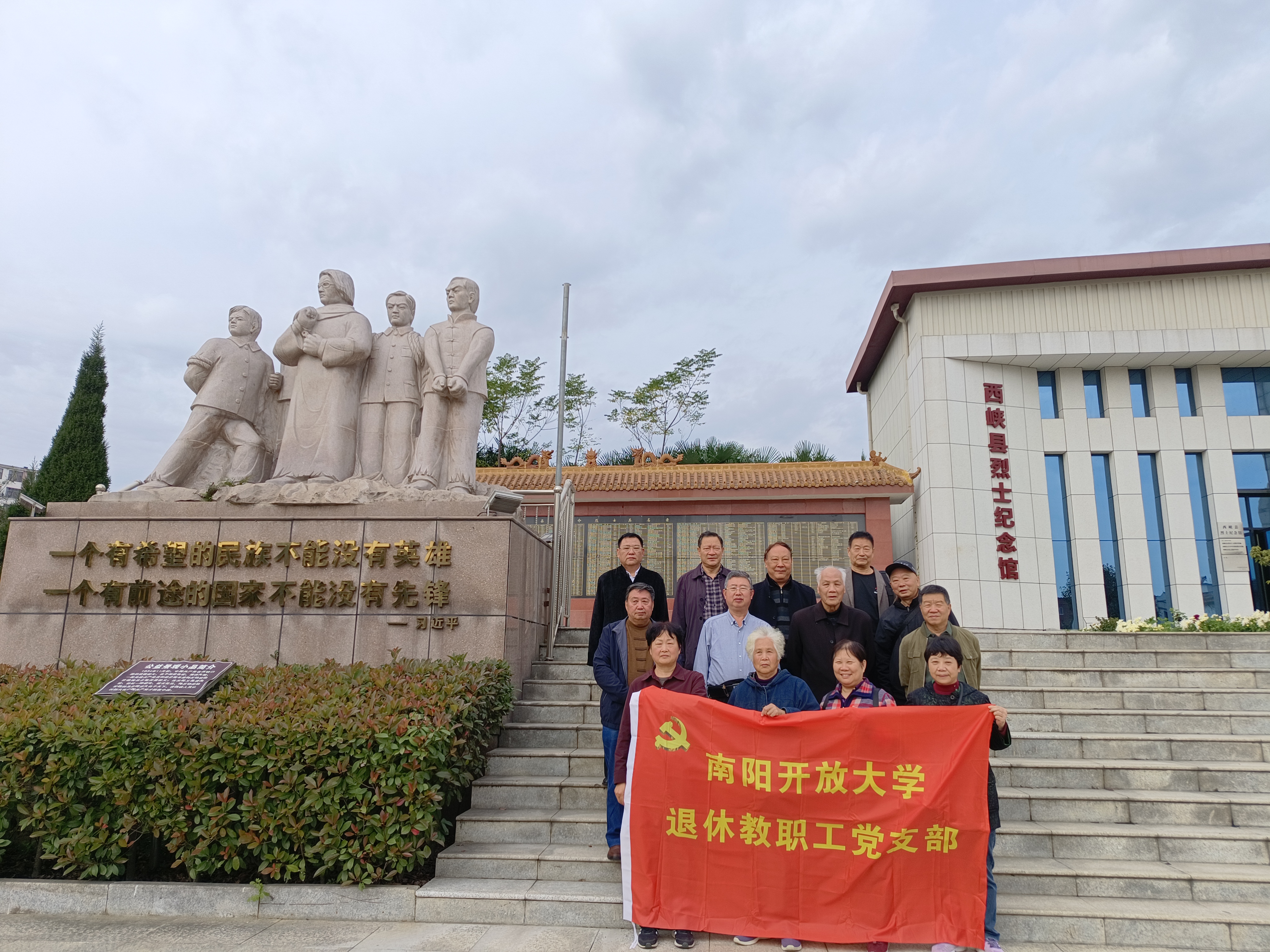 为深入推进学习贯彻习近平新时代中国特色社会主义思想主题教育深入开展,进一步激发离退休干部党员感悟初心、增强党性,南阳开放大学第五党支部于2023年11月9日到西峡县烈士陵园举行“不忘初心,牢记使命”主题党日活动。