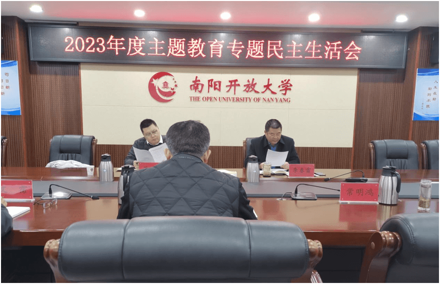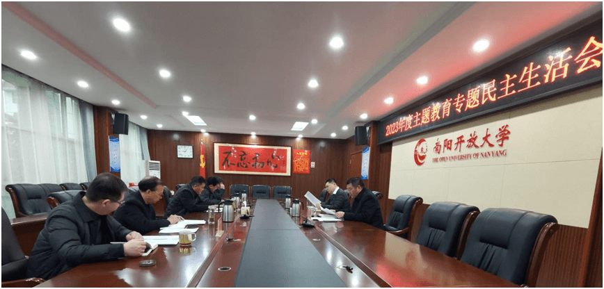 1月16日上午,南阳开放大学党委班子在综合楼二楼会议室召开2023年度主题教育专题民主生活会,市委组织部范悦同志到会指导并做点评讲话,会议由党委副书记、校长李春雷同志主持,校党委班子成员全部参加会议。