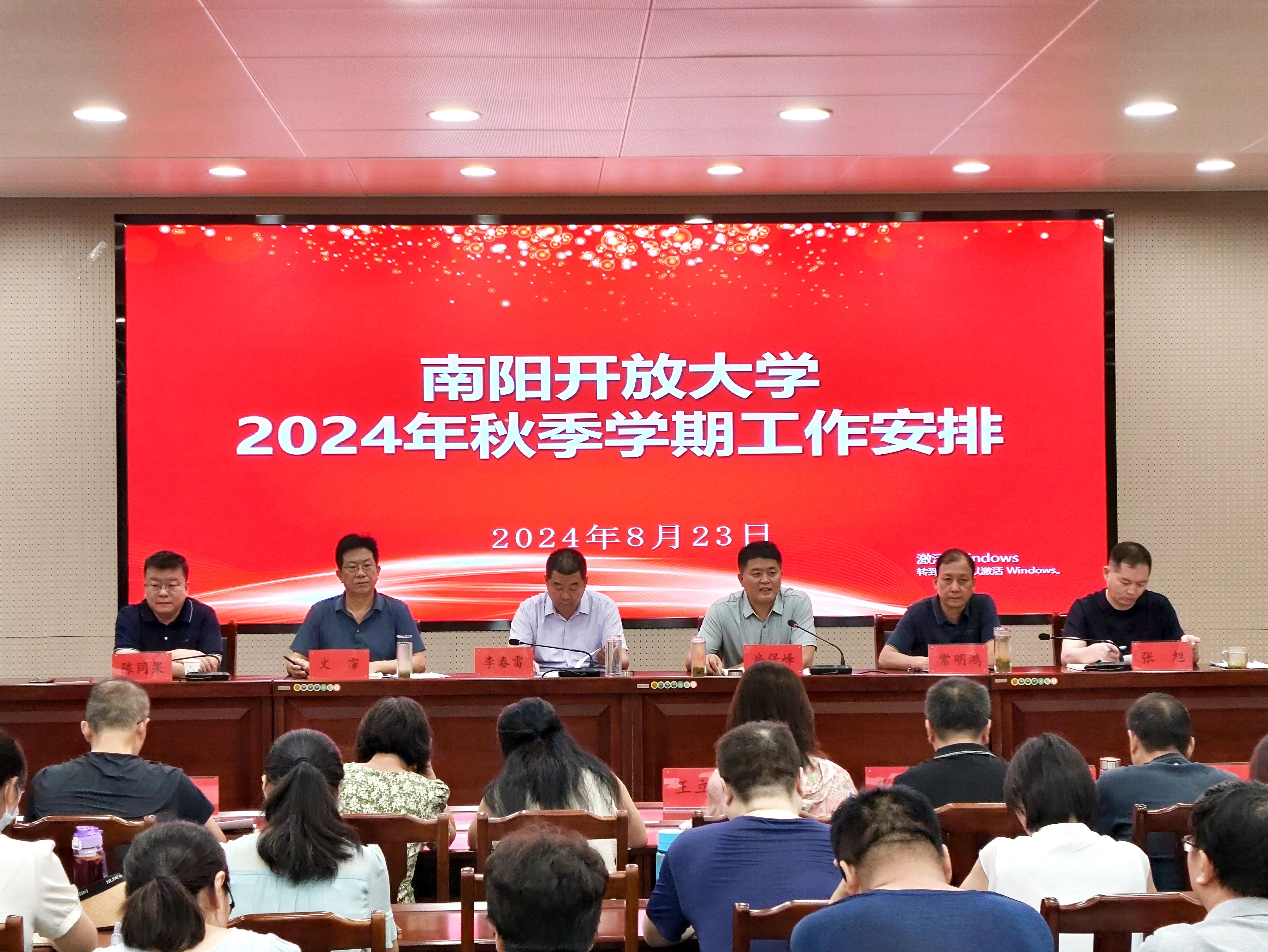 会上,李校长指出,2024年秋期工作要聚焦招生工作,中职生教学和日常管理,开放教育学员支持服务,老年教育、社区教育和培训工作,高职高专和成人高招,后勤服务,财务管理和服务,教学支持和服务,安全保卫等重点工作,全力抓好党建工作、意识形态和全面从严治党工作,打造忠诚干净担当的干部队伍,持续保持学校高质量发展,为南阳教育事业贡献力量。会上,房书记对近期部分重点工作进行了安排部署。