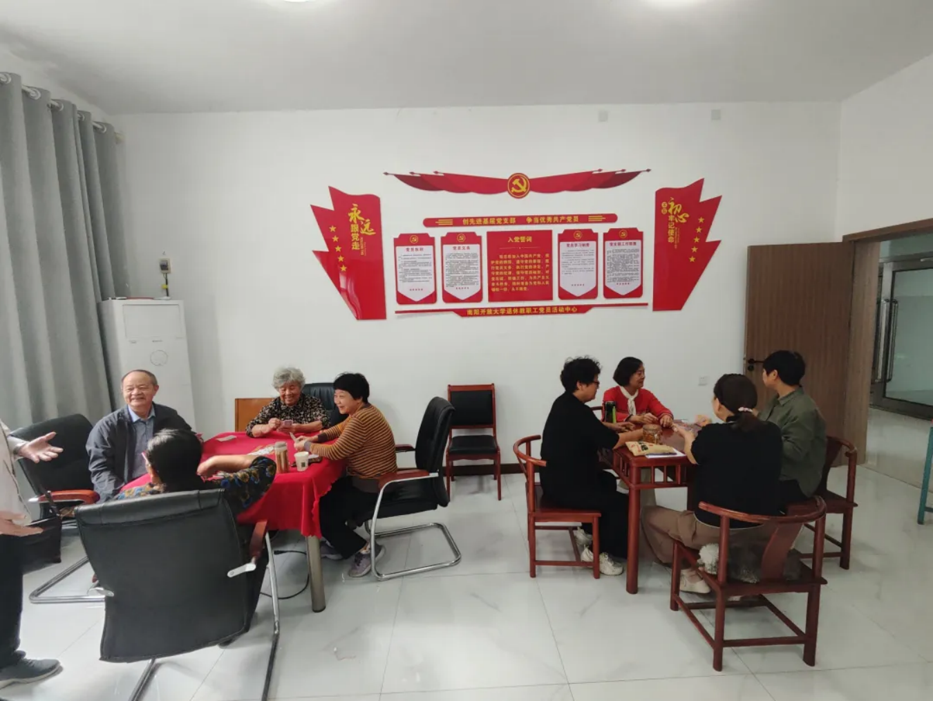 九月九日是传统重阳佳节,为进一步弘扬传统文化,丰富我校退休教职工生活,10月11日下午,我校在退休教职工活动室举办“情暖重阳,'棋'乐无穷”竞技活动。党委副书记、校长李春雷,党委副书记房保峰到活动现场看望退休教职工。