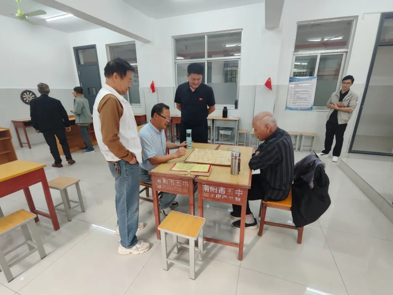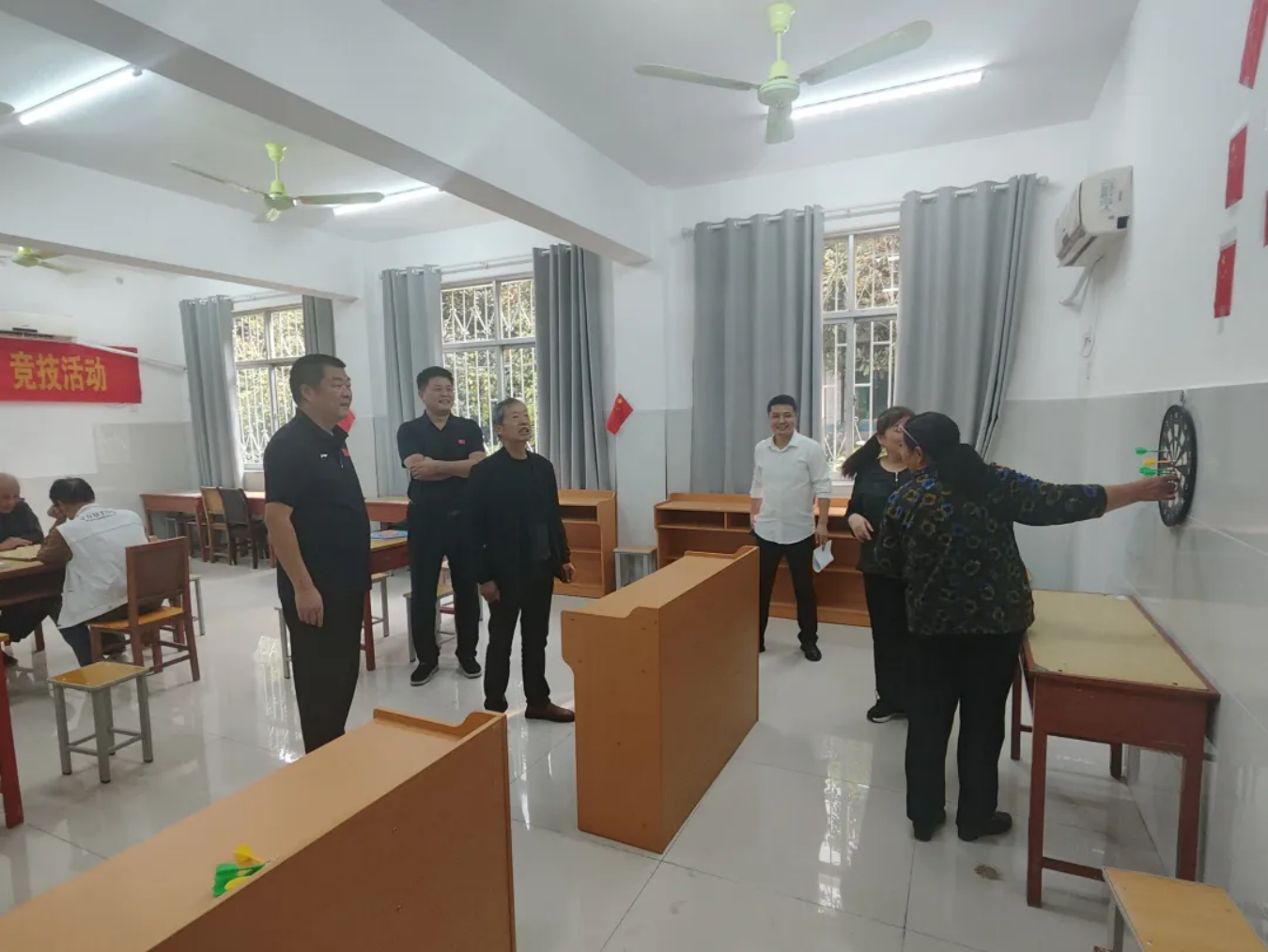 此次竞技活动根据老同志的身体状况和兴趣爱好分为扑克牌、象棋、跳棋、飞镖四个项目。活动现场,20多名退休教职工们在轻松愉快的氛围中竞技比拼,每位参与者都展现出了极高的热情与积极性,活动现场气氛热烈而充满活力。大家纷纷表示:“这样的活动真是太好了,让我们感受到了党和政府的重视以及学校的关怀。”