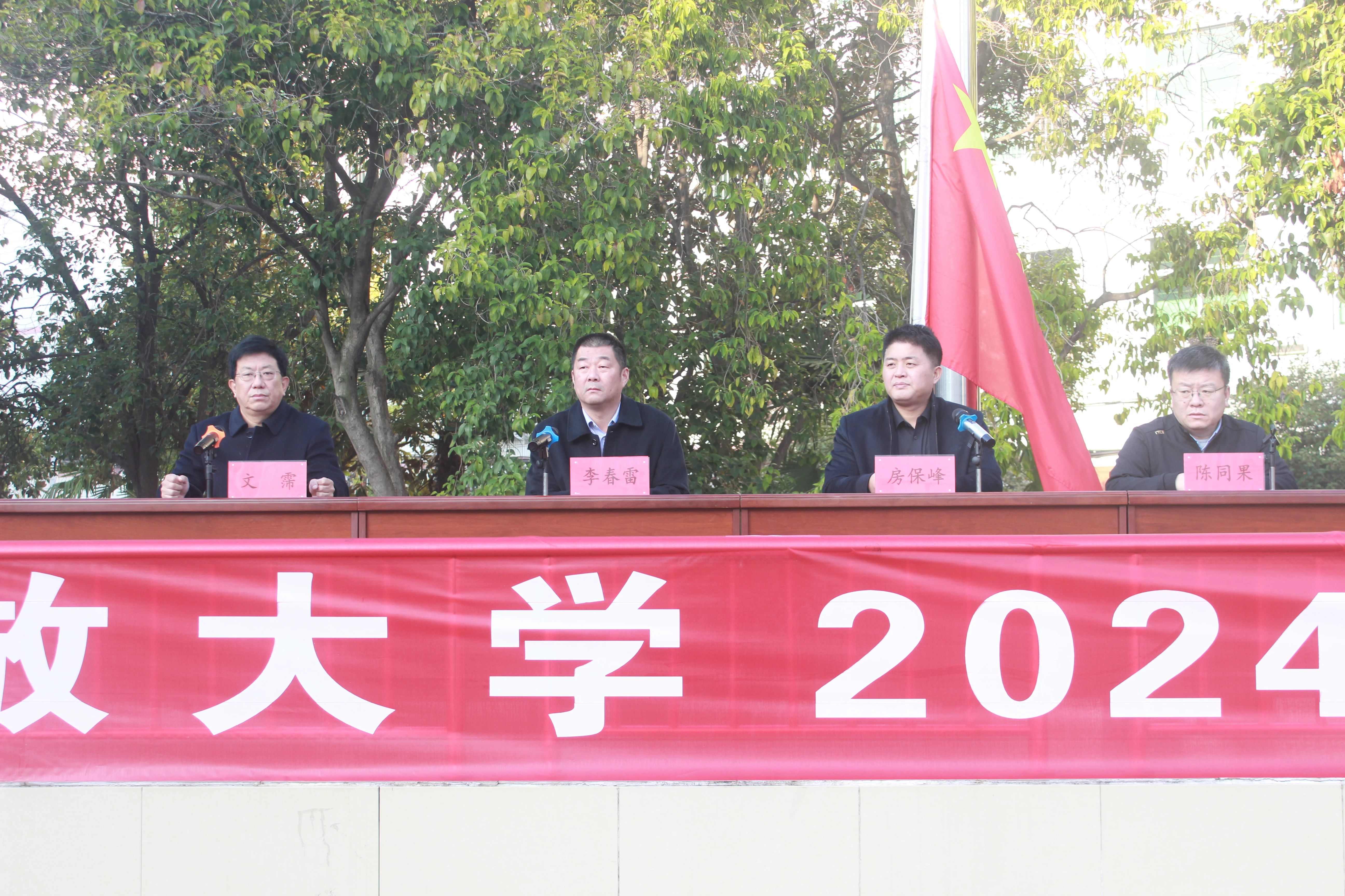 11月21日上午8时30分,在校党委委员、副校长文霈同志主持下举行了隆重的开幕式,党委副书记房保峰同志发表了热情洋溢的致辞,随后运动员代表和裁判员代表进行了宣誓,在全场观众的掌声中,校党委副书记、校长李春雷同志宣布南阳开放大学2024年秋期运动会开幕。