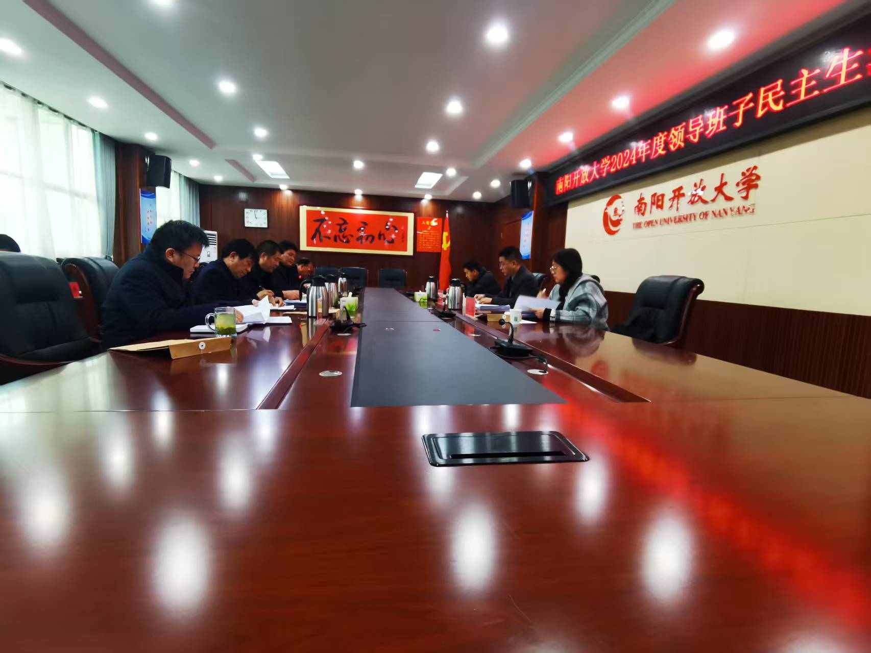 按照市委统一部署,2月19日下午,南阳开放大学党委班子在综合楼二楼会议室召开2024年度民主生活会,市领导干部民主生活会督导组、驻市教育纪检监察组副组长张全清一行3人到会指导点评,会议由党委副书记、校长李春雷同志主持,校党委班子成员全部参加会议,相关部门负责人列席会议。
