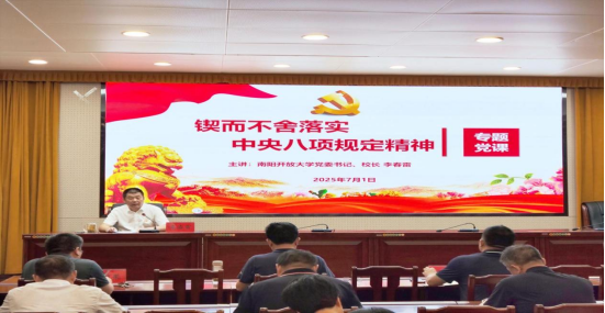 2025年度,校党委严格落实“第一议题”制度,组织召开党委会30次,系统学习了习近平总书记关于党的建设的重要论述、关于加强党的作风建设的重要论述及深入贯彻中央八项规定精神的要求,深入学习了《习近平关于河南工作论述摘编》,领导班子坚决捍卫“两个确立”,做到“两个维护”,政治三力强,善于将党的创新理论融入办学治校全过程。坚持用习近平新时代中国特色社会主义思想指导学校各项事业高质量发展。