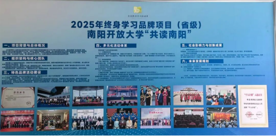 品牌项目《共读南阳》获河南省教育厅“终身学习品牌项目”典型案例,张雅玲、范淑民两位学员获评2025年南阳市新时代“百姓学习之星”!这两项荣誉既是对学校终身教育工作的充分肯定,更是学校坚守教育初心、服务全民学习的生动实践。
