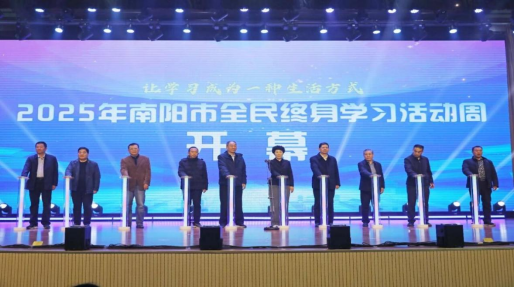 11月13日上午,以“让学习成为一种生活方式”为主题的2025年南阳市全民终身学习活动周开幕式在南阳开放大学大礼堂隆重举行。近年来,学校持续深化终身教育工作,积极践行终身学习理念,依托开放大学办学体系构建了覆盖市、县(区)、乡、村(社区)的四级终身教育网络,不断拓展服务人群,提升管理服务水平。以此次承办全民终身学习活动周开幕式为契机,学校将继续推动终身教育向纵深发展,着力打造具有影响力的终身学习品牌,为南阳市学习型社会建设和终身教育事业发展发挥示范引领作用。