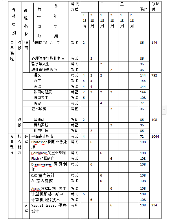 本专业课程设置主要包括公共基础课和专业技能课。公共基础课包括德育课,文化课,体育与健康,艺术,以及包括自然科学和人文科学类基础课程。