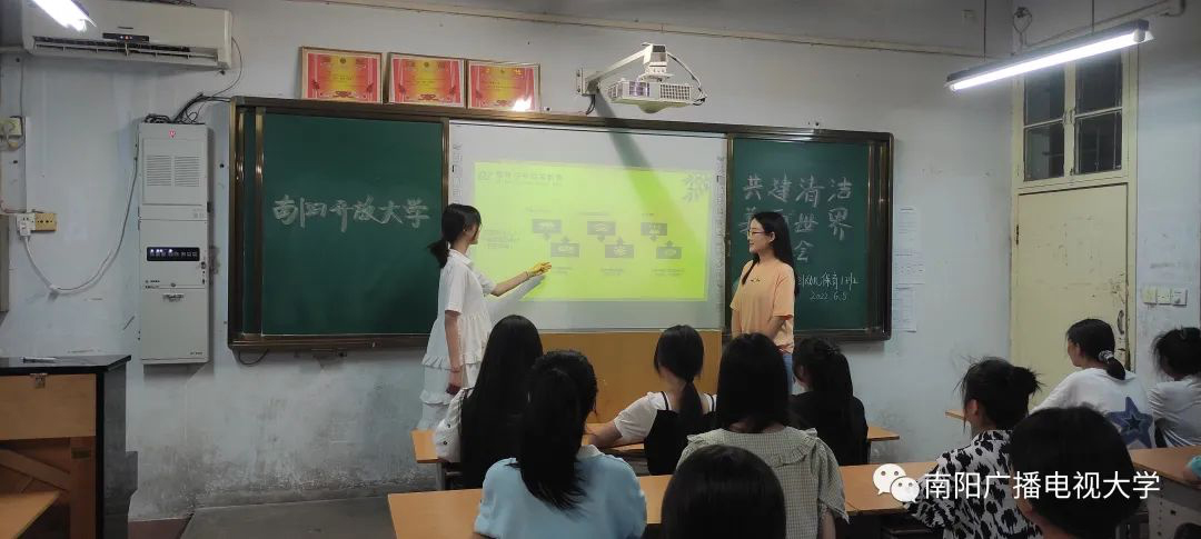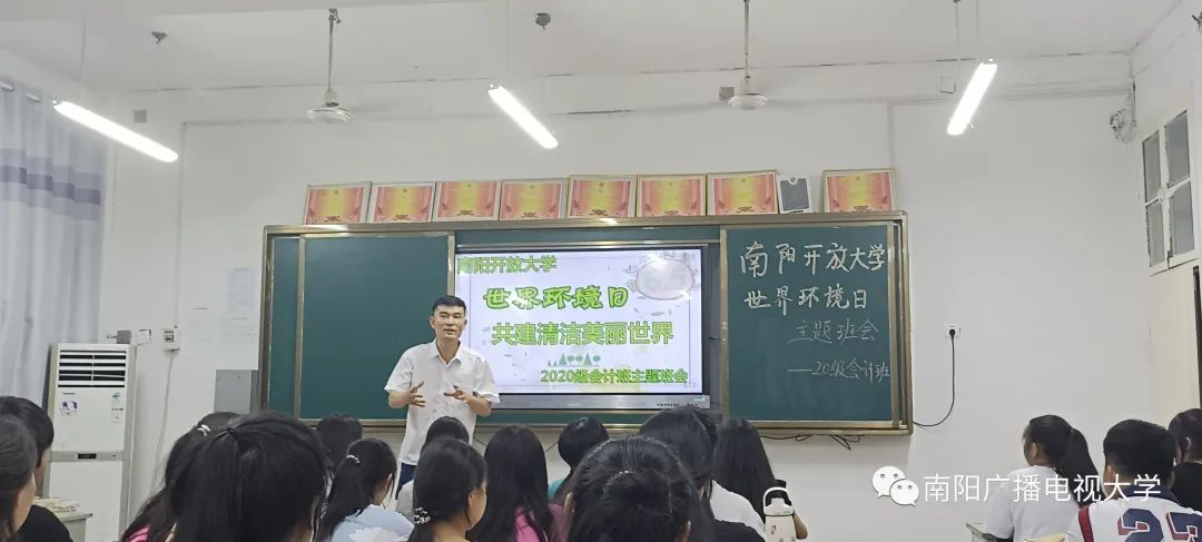 为提升广大师生对环境问题的认识,增强环保意识,养成良好环保习惯,营造人人参与的校园环保氛围,在青少年学生心中播撒生态文明的种子,6月5日世界环境日当晚,南阳开放大学各教学班举行“共建清洁美丽世界”主题班会。