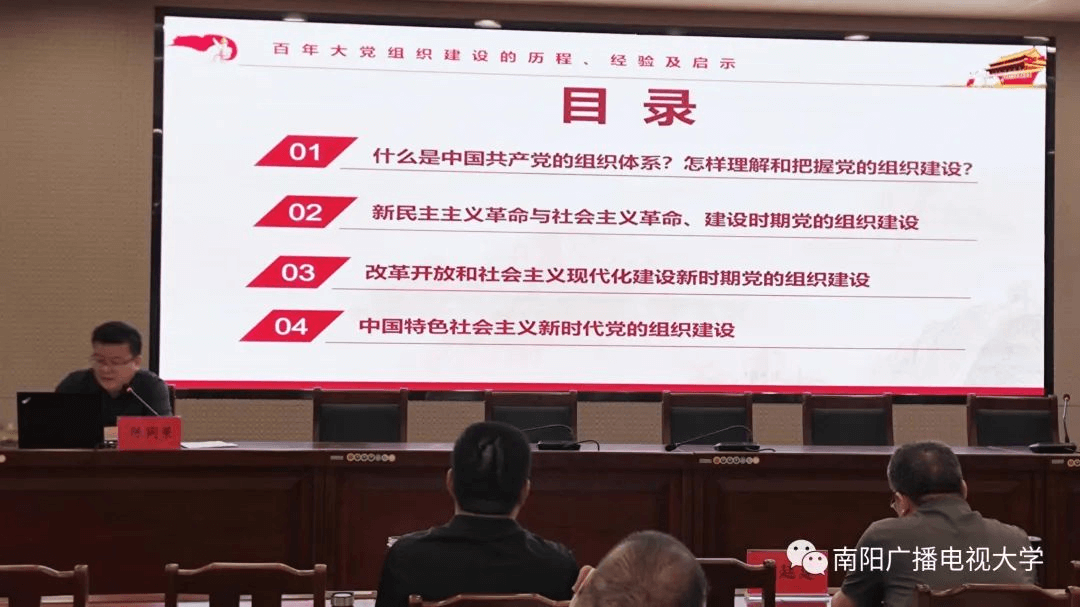 陈校长以“百年大党组织建设的历程、经验及启示”为主题,从什么是中国共产党的组织体系,新民主主义革命与社会主义革命、建设时期党的组织建设,改革开放和社会主义现代化建设新时期党的组织建设,中国特色社会主义新时代党的组织建设等四个方面对党的组织建设发展历程进行了详细解读,对党的组织建设的经验及启示进行了回顾,整个课程内容详实,内涵丰富,使我校广大党员干部对党的组织建设有了更深入的了解。