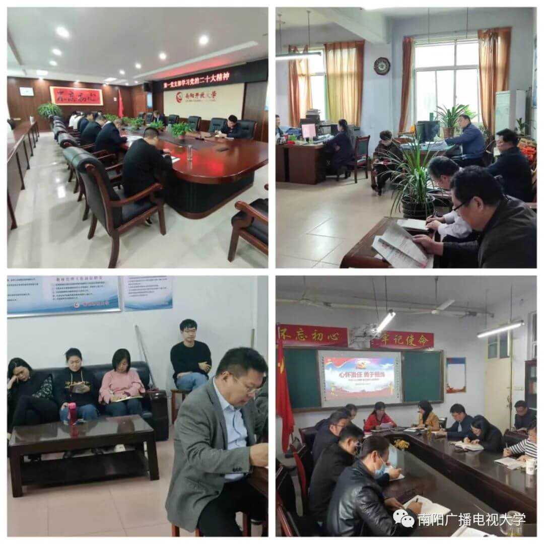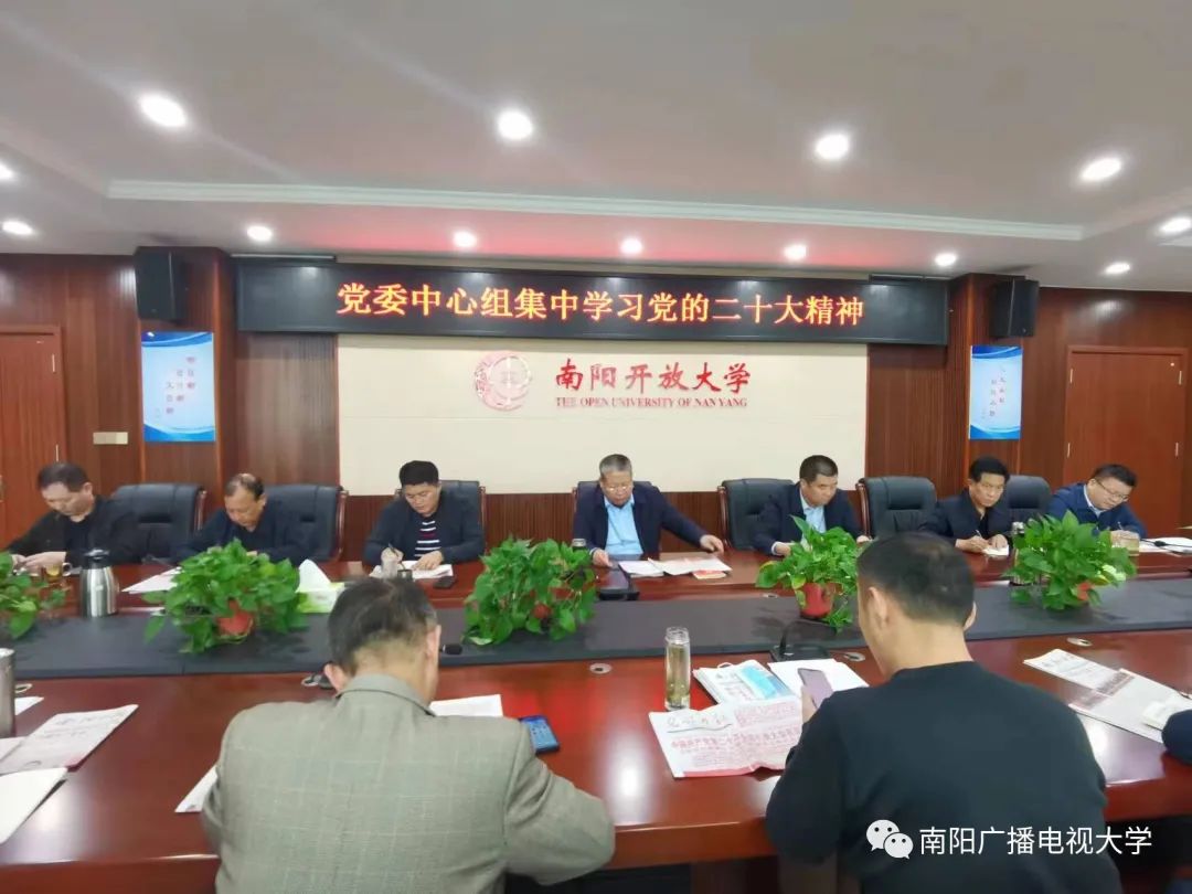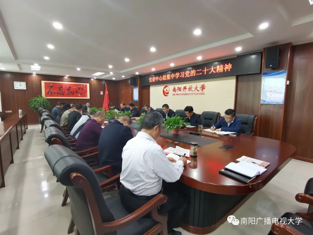10月24日,南阳开放大学召开党委理论学习中心组(扩大)会议,专题组织学习党的二十大精神,并对各支部和全体师生深入学习贯彻党的二十大精神进行安排部署。南阳开放大学党委书记全廷建主持会议并讲话。校领导班子全体成员和各处室负责人参加会议。