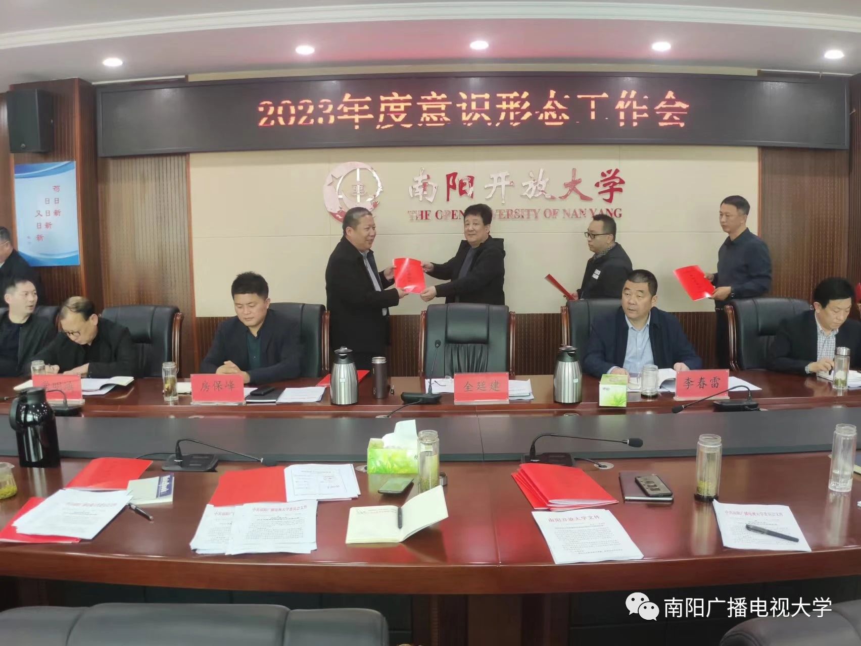 为进一步加强和改进我校意识形态工作,落实党管意识形态原则,牢牢掌握意识形态工作的领导权、主动权,3月10日,南阳开放大学召开2023年度意识形态工作会。会议由校党委副书记、校长李春雷主持,校党委书记全廷建作了专题讲话,校党委副书记房保峰传达了《南阳开放大学2023年意识形态工作实施方案》,其他班子成员出席会议。