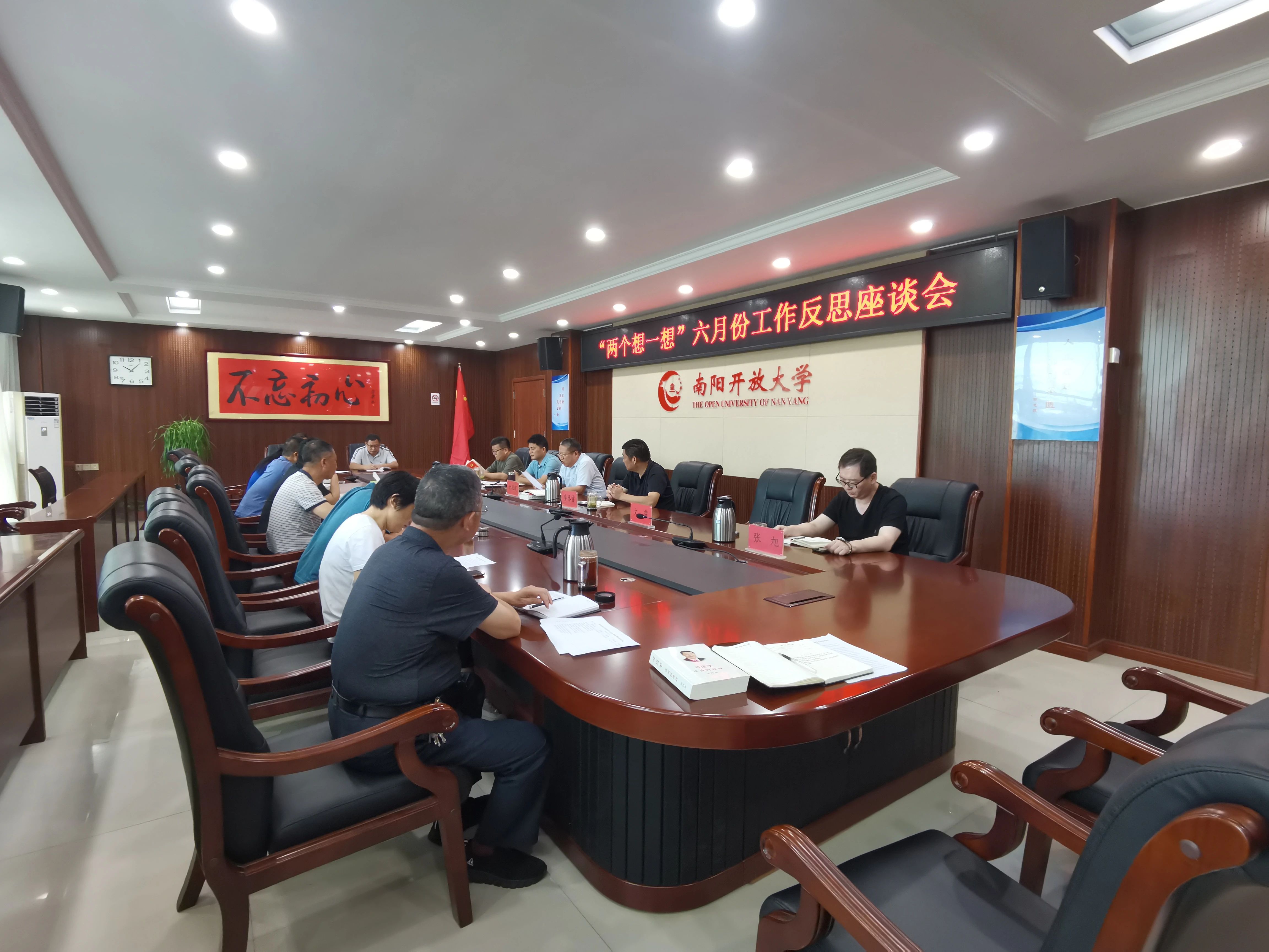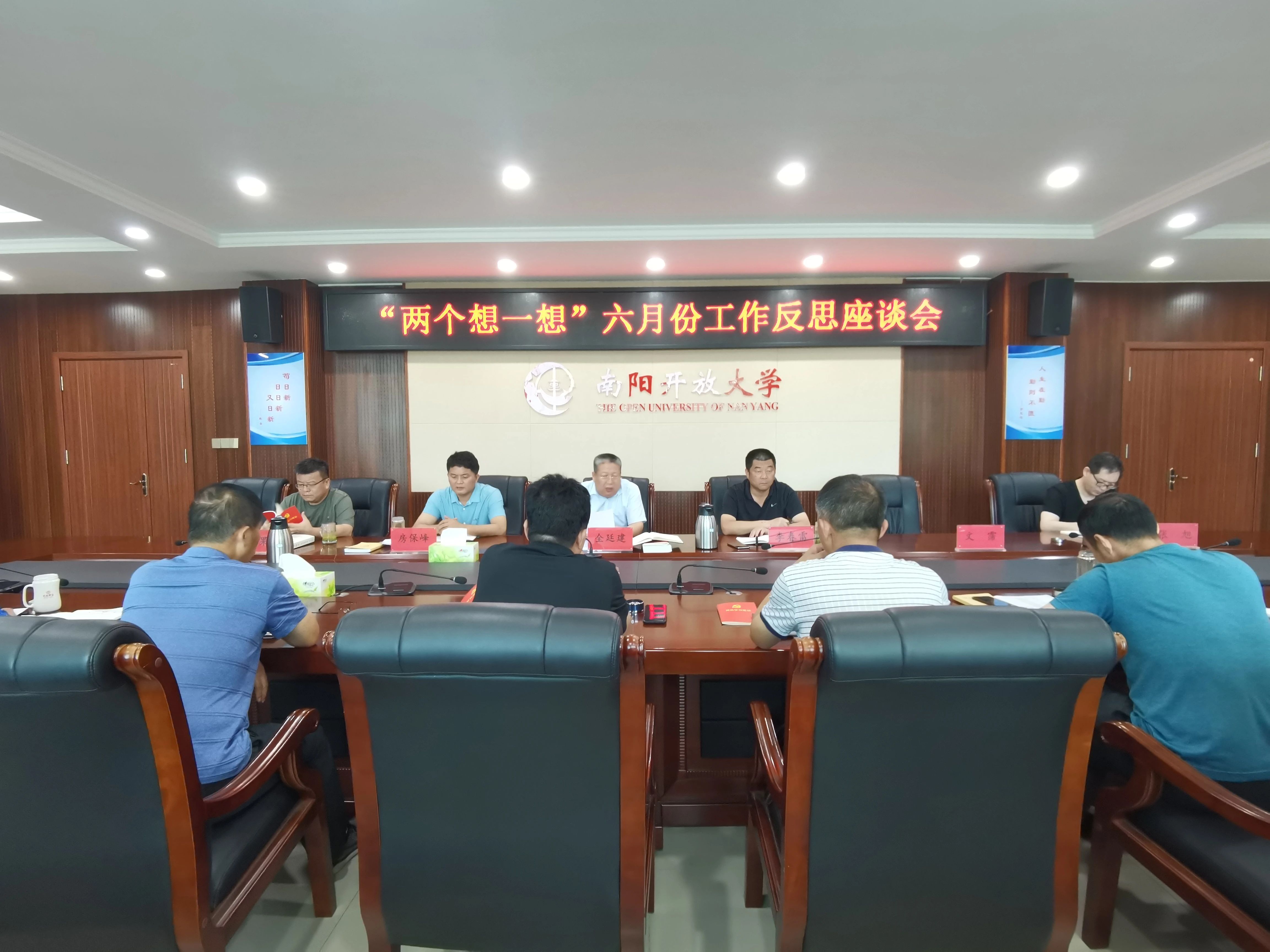 为深入开展“两个想一想”活动,7月4日上午,南阳开放大学开展““两个想一想”六月份工作反思座谈会,校领导班子成员及各处室负责人参会。