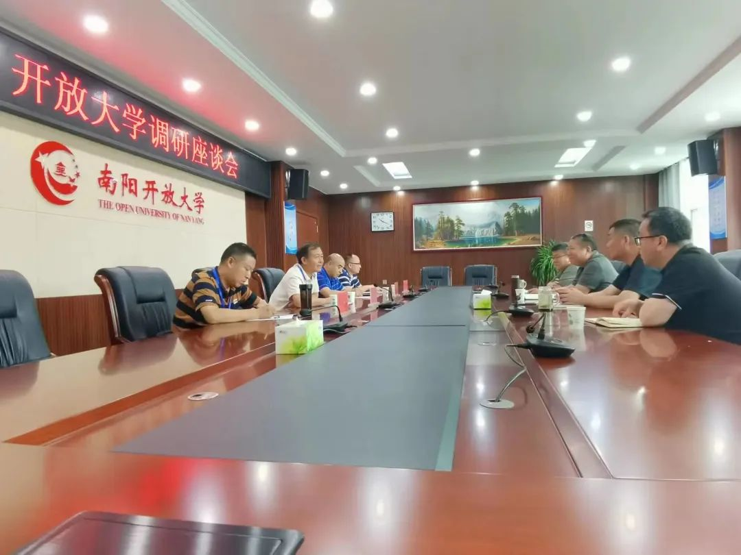 7月8日,河南开放大学党委委员、副校长李小明等一行四人到南阳开放大学调研并召开座谈会。南阳开放大学党委书记全廷建,党委副书记、校长李春雷,党委委员、副校长陈同果以及开放教育部、党政办公室负责人参加了座谈。