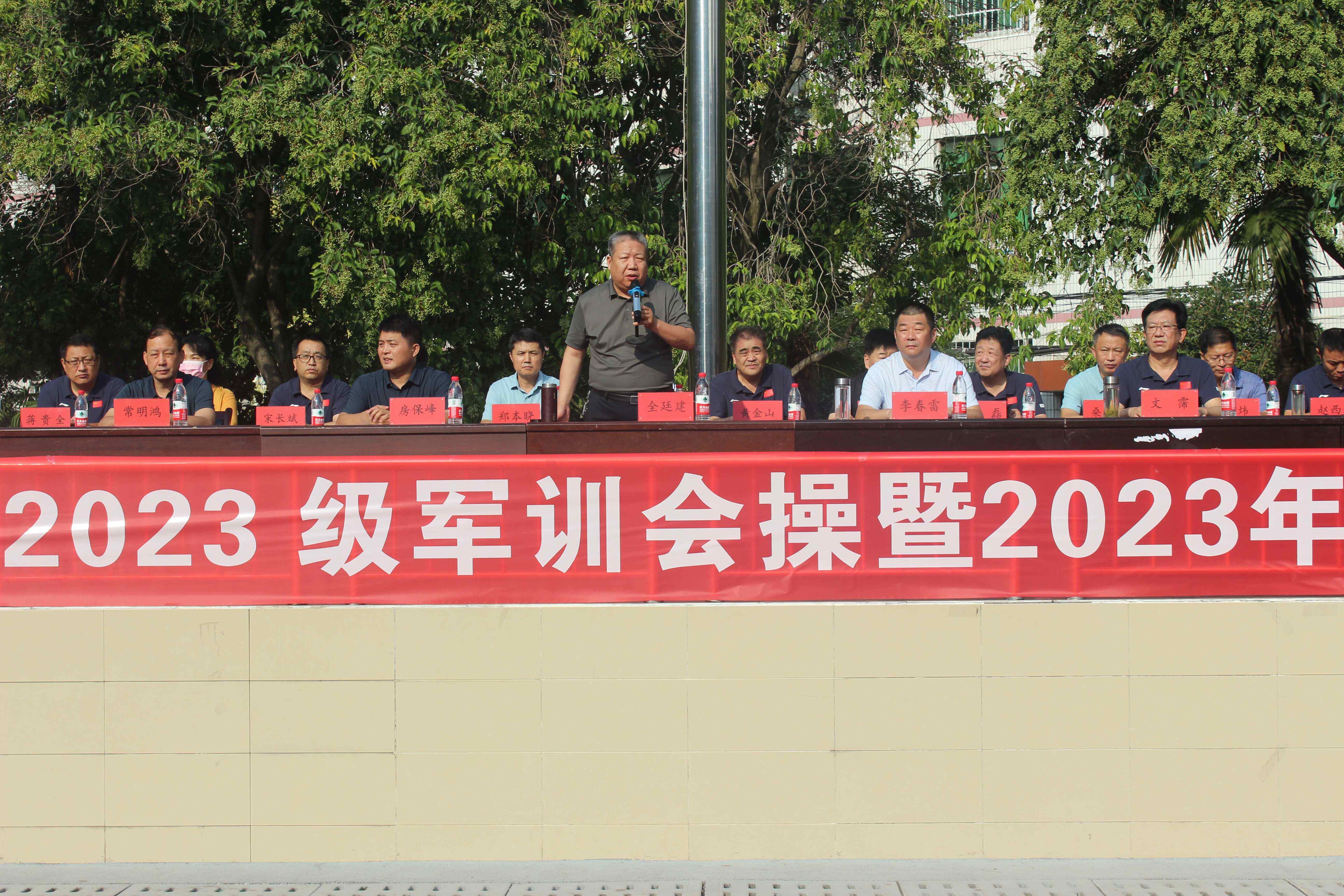 天高云淡金秋爽,春种秋收硕果香 。在第39个教师节来临之际 ,2023年9月6日上午,我校在开放大学运动场举行2023年秋期入学新生军训会操表演暨2023年秋期开学典礼。校党委书记全廷建,校党委副书记、校长李春雷,其他党委班子成员,校全体中层干部及中专教育部全体师生参加了本次会议。会议由校党委委员、副校长张旭同志主持。