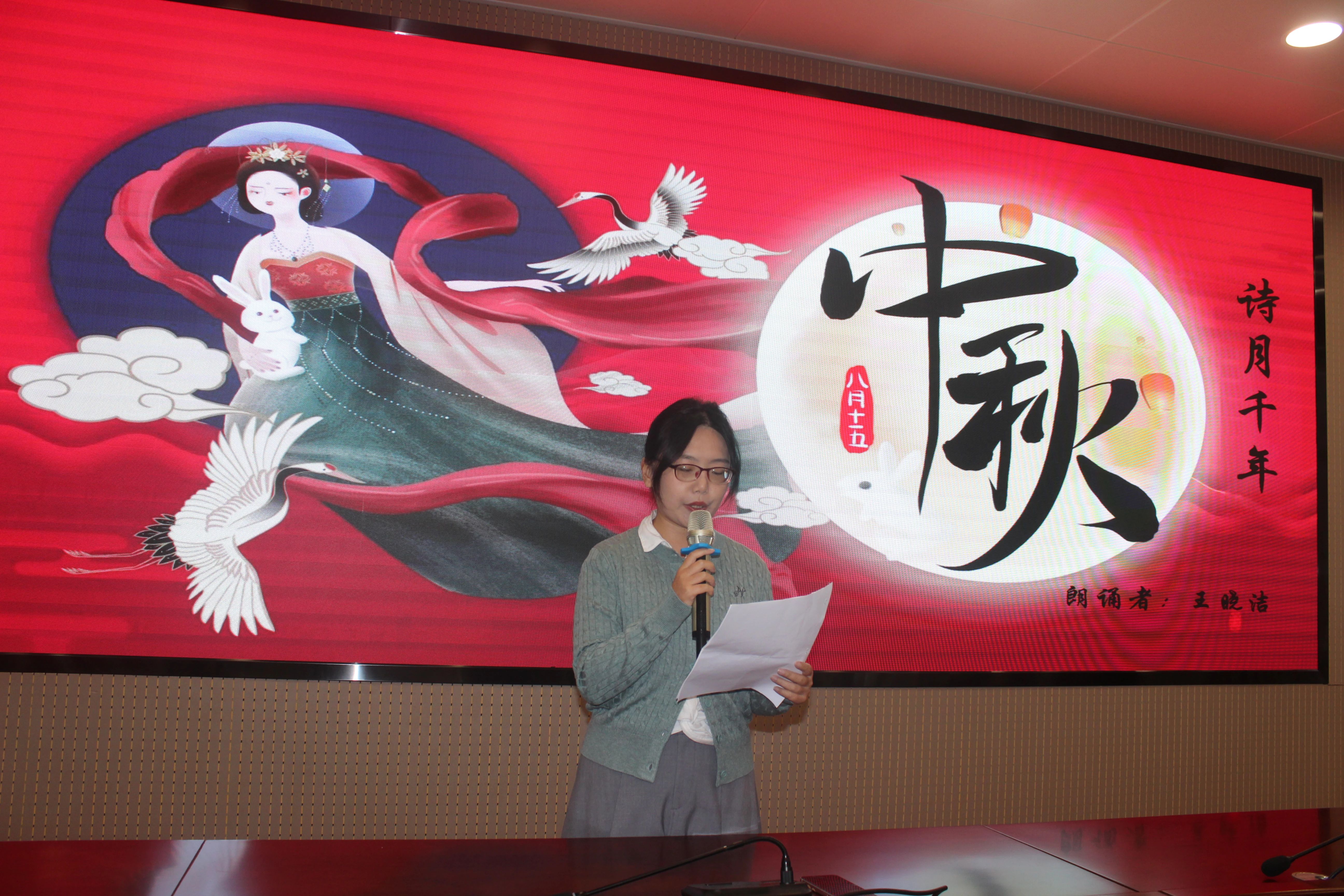 此次活动由校工会和校团委共同主办,校团委书记段志东担任主持人。活动中,我校4名年轻教职工以中国传统节日“中秋”为主题,或精选古代诗词歌赋、或萃集现当代名篇佳作,以诵读展示家国情怀和团圆美满的节日氛围。活动现场,朗诵者时而激情澎湃,时而浅吟低诵,声情并茂的朗诵抒发出最纯真的感情,引得现场观众掌声不断。