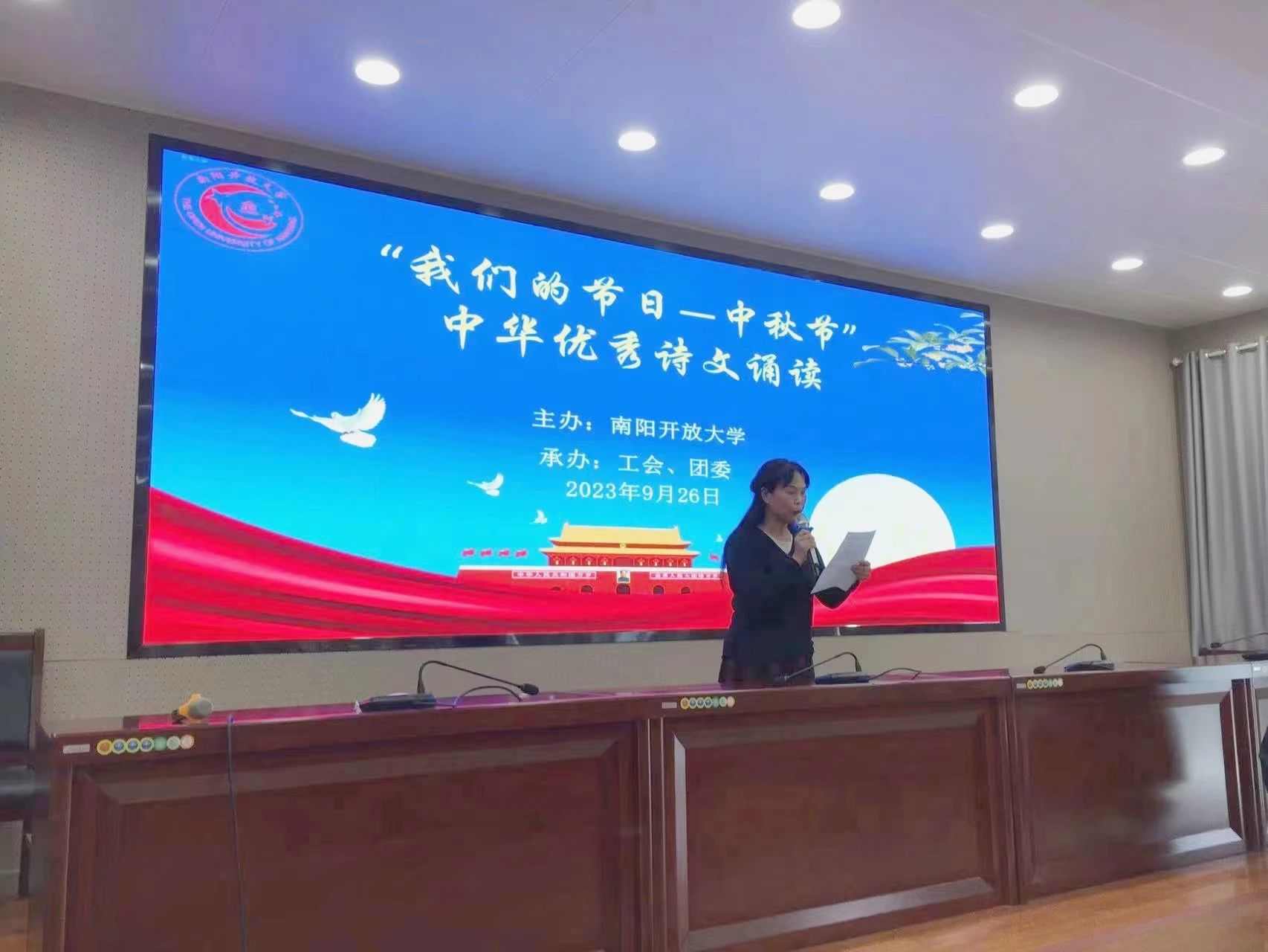 为喜迎中秋佳节,传承中华民族优秀传统文化, 9月26日下午,南阳开放大学组织开展了“我们的节日·中秋节”诗文朗诵活动,全体教职工参加活动。