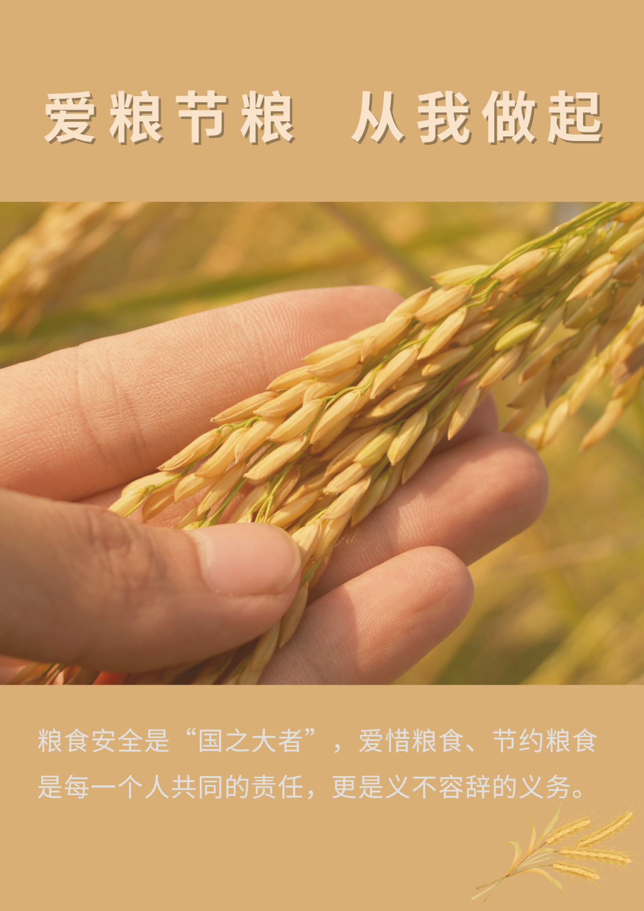 “谁知盘中餐,粒粒皆辛苦。”让我们切实行动起来,争做爱粮节粮的倡导者、践行者、推动者,拒绝餐桌上的铺张,杜绝舌尖上的浪费,为保障国家粮食安全贡献力量,让勤俭节约在全社会蔚然成风。