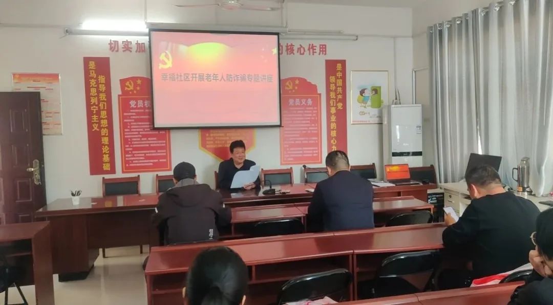 10月20日下午,在重阳节来临之际,为加强社区老年人防诈骗知识的宣传力度,唤醒人们的防诈骗意识,构建和谐社会,在南阳开放大学校长李春雷的带领下,大家走进幸福社区为社区老年人举办了防诈骗讲座,开展了“关爱老年人,守住钱袋子”老年人防诈骗知识宣传活动,切实维护老年人合法权益,提高社区老年人防骗意识和能力,守好老年人的“养老钱”。
