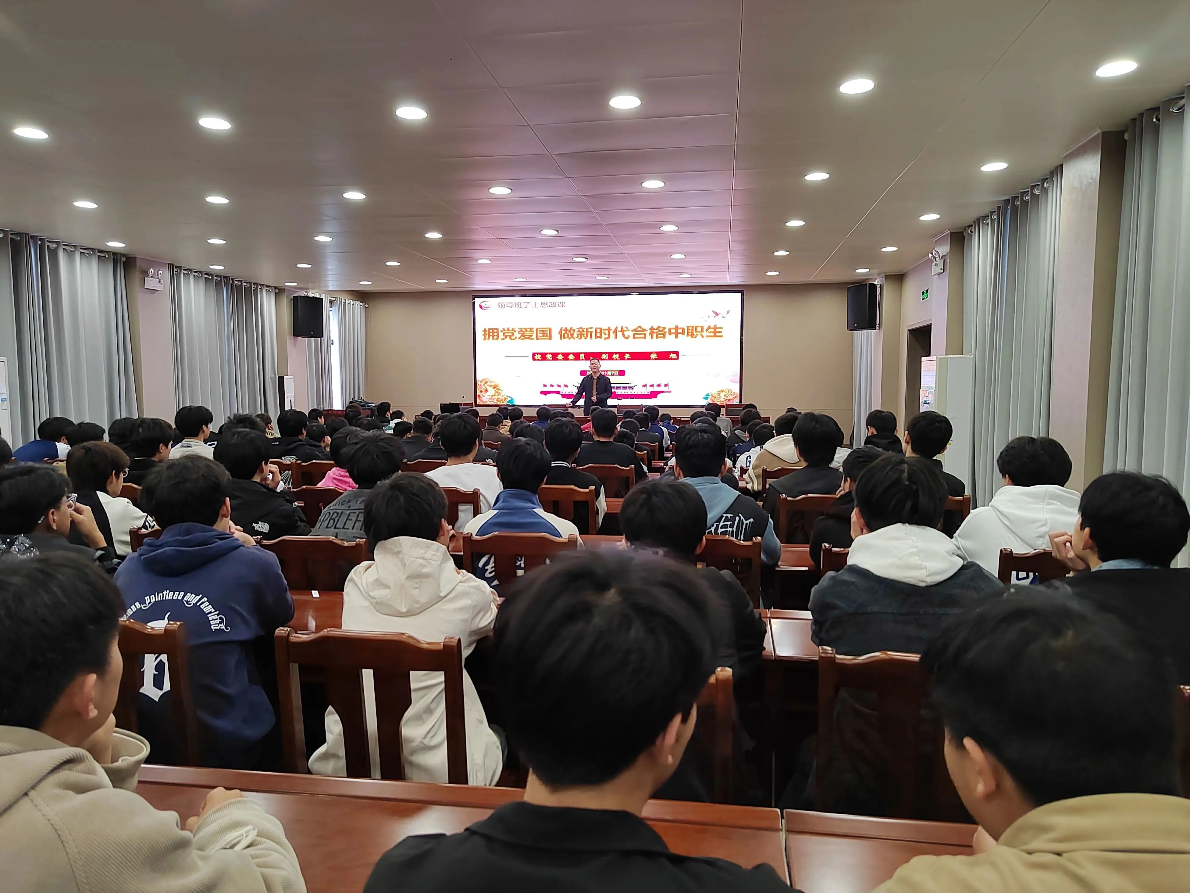 11月7日下午,校党委委员、副校长张旭在多功能报告厅以《拥党爱国 做新时代合格中职生》为题给我校汽车维修专业全体学生上了一堂别开生面的思政课。