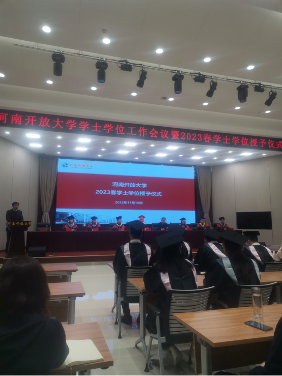 2023年11月10日,河南开放大学举办河南开放大学学士学位工作会议暨2023春学士学位授予仪式。26个市级开大(电大)、直管县电大设直播分会场线上参加会议,各学习中心师生线上同步收看会议直播。