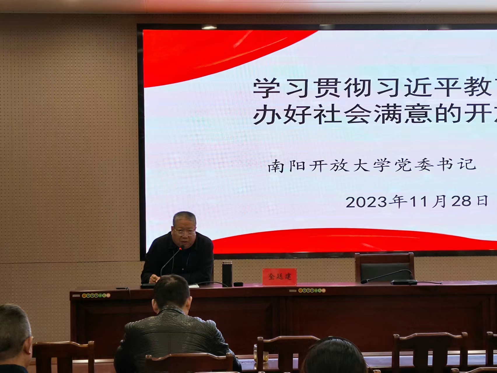 此次读书班采取个人自学、集中研讨等方式,坚持读原著、学原文、悟原理,学习了习近平总书记视察河南重要讲话、视察南阳重要指示重要批示和《习近平新时代中国特色社会主义思想学习纲要》等书目。为强化学习成效,28日下午,我校开展主题教育党课,校党委书记全廷建以《学习贯彻习近平教育思想,办好社会满意的开放大学》为题,对习近平教育思想进行了阐述。