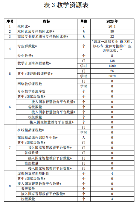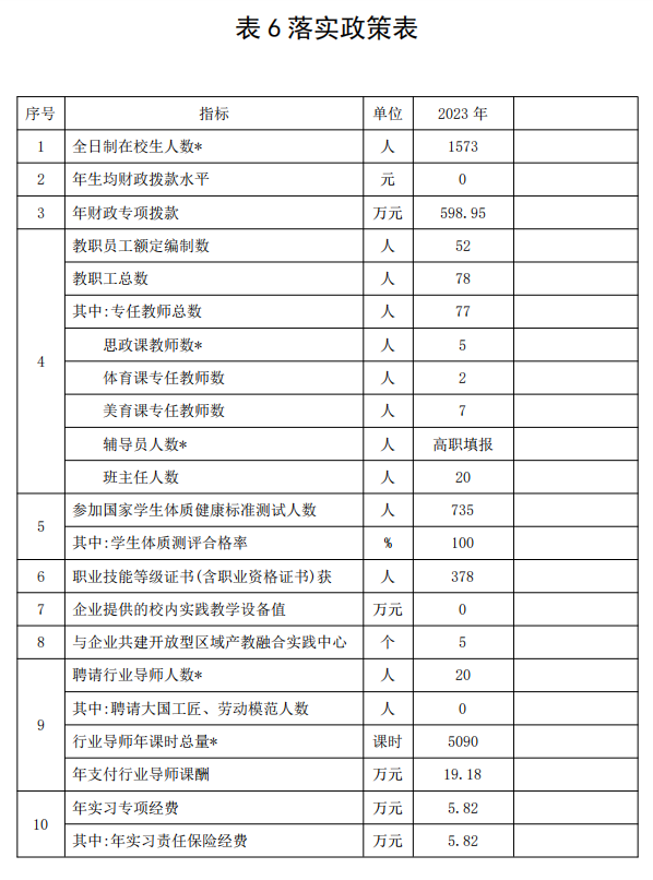 表、教学资源表、服务贡献表、 落实政策表等附件 6 个。