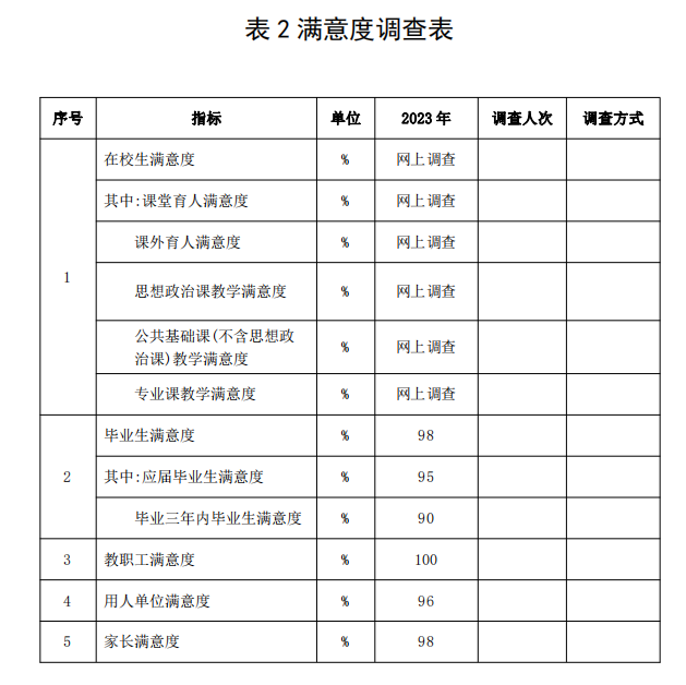 况。主体部分后另附有人才培养质量计分卡、 满意度调查