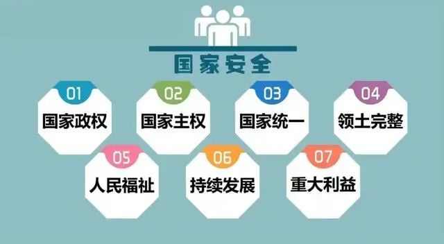 2015年7月1日施行的《中华人民共和国国家安全法》明确指出:国家安全是指国家政权、主权统一和领土完整、人民福祉、经济社会可持续发展和国家其他重大利益相对处于没有危险和不受内外威胁的状态,以及保障持续安全状态的能力。