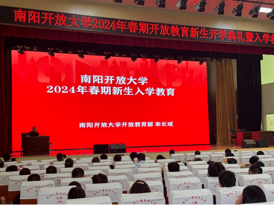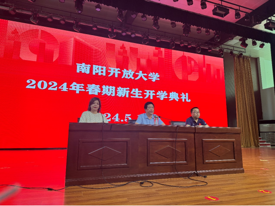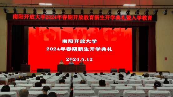5月12日上午9点,我校在大礼堂隆重举行了2024年春期开放教育新生开学典礼,校党委委员、副校长文霈、开放教育部主任宋长斌、副主任王立芳、开放教育部全体老师及200余名新生代表参加了开学典礼,典礼由开放教育部副主任王立芳主持。