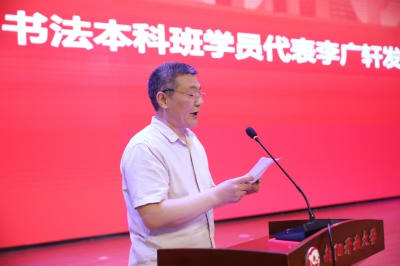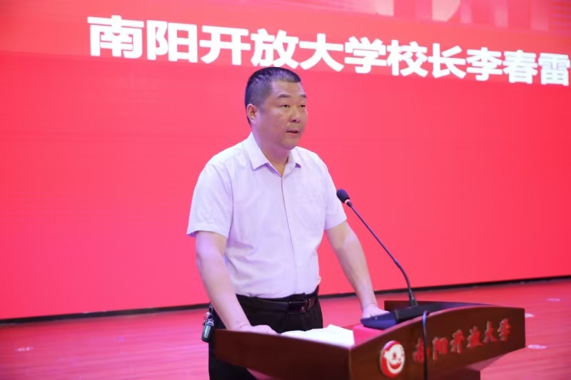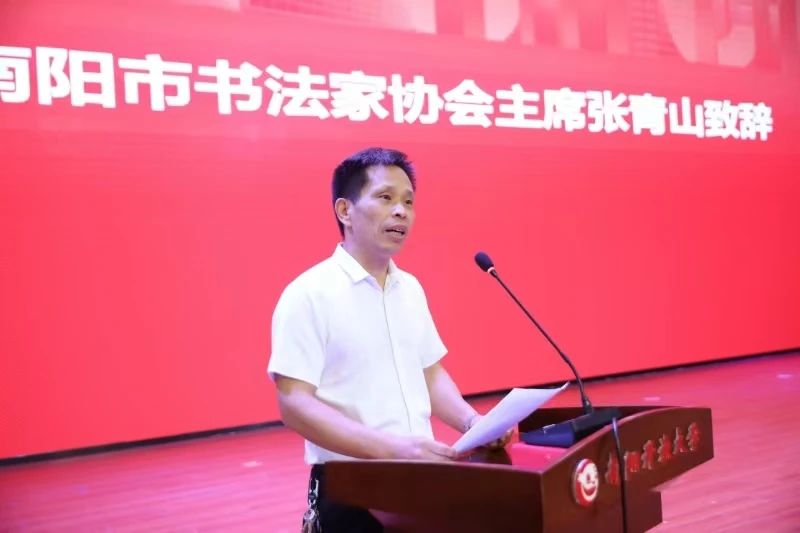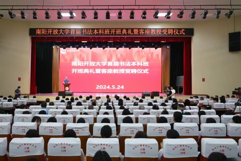 5月24日上午,南阳开放大学首届书法本科班开班典礼暨客座教授受聘仪式在学校大礼堂隆重举行。国家开放大学特聘教授庞中华先生开展专题讲座,国家开放大学艺术学院副院长牛涛、书法学专业教师王少凡博士,河南开放大学人文学院院长尚宏、教授孟立丛,河南省书法家协会副主席、南阳市书法家协会主席张青山出席会议。南阳开放大学党委班子全体成员、南阳书法家协会成员代表、南阳老年大学书法班成员代表、南阳开放大学首届书法本科班学员、部分特邀嘉宾和南阳开放大学师生代表600余人参加活动。