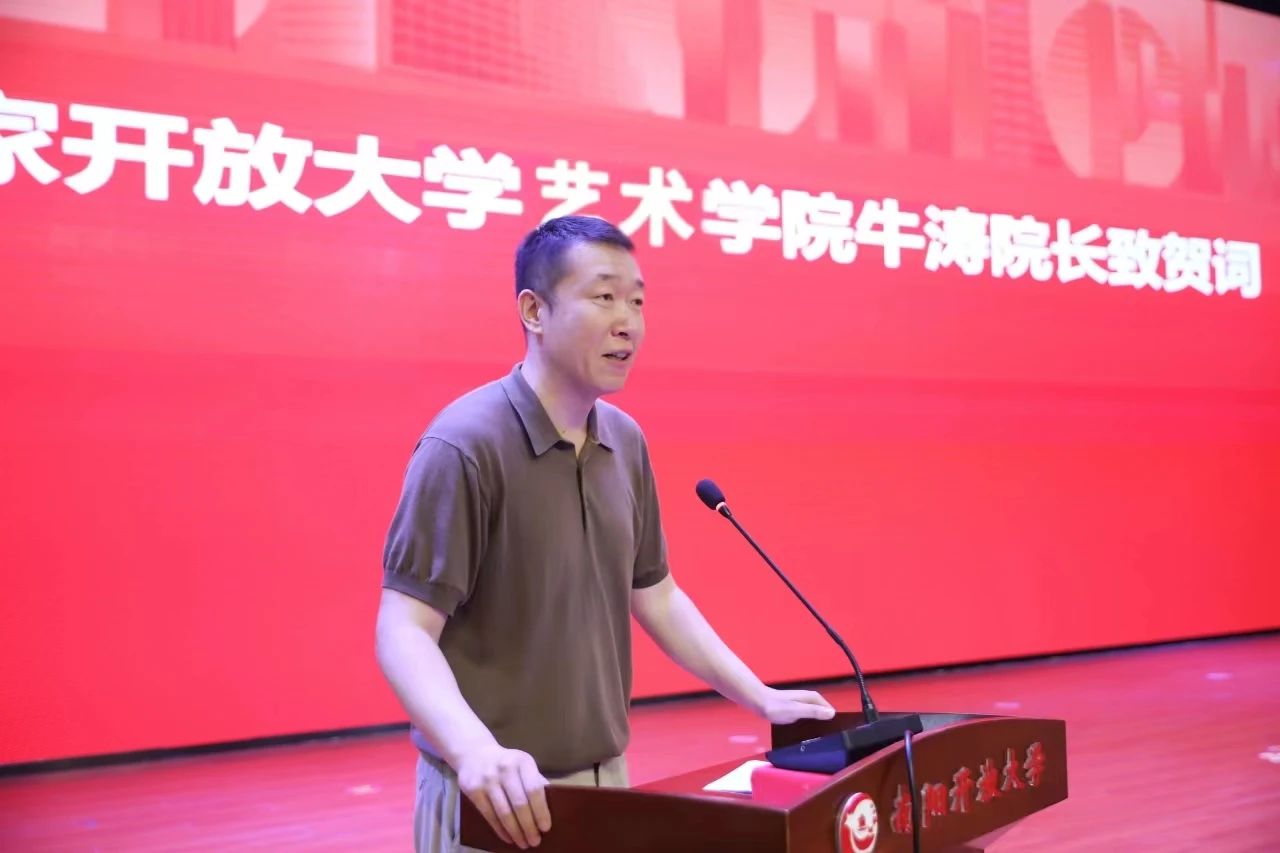 活动第一项,牛涛院长首先表达了对庞中华老师的感谢,介绍了国家开放大学艺术学院的发展历程和课程设置,并重点讲述了书法学专业的发展现状。同时,他表示,南阳开放大学举办书法本科班是落实习近平总书记关于全面加强和改进学校美育工作重要指示的重点举措,此次活动恰逢其时,很有意义,今后要在艺术教育方面有更多的合作,以实际行动为建设学习型社会、学习型大国而努力。