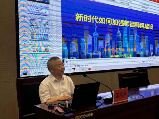 开班仪式结束后,本次培训的第一课正式开始。来自南阳师范学院的张鸿军教授给大家带来了《新时代如何加强师德师风建设》的专题讲座。
