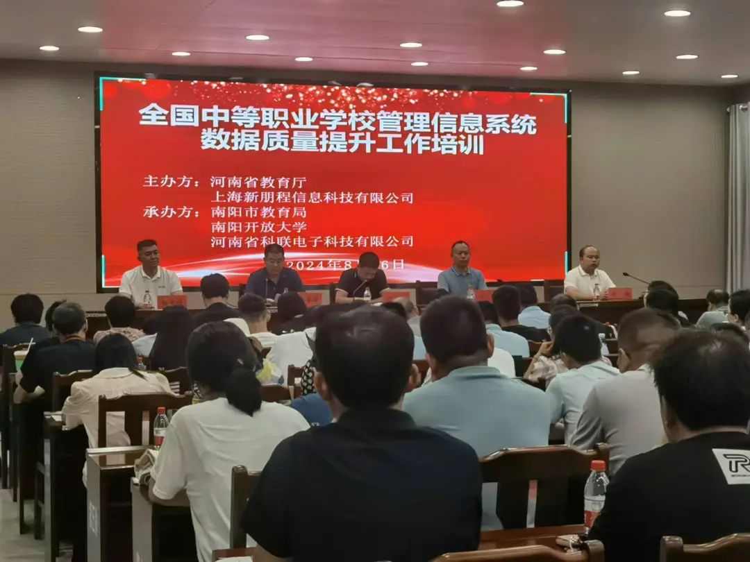 为贯彻落实《河南省教育厅关于做好2024年度中等职业学校管理信息系统数据质量提升工作培训的通知》精神,8月16日,由省教育厅主办,市教育局联合南阳开放大学、河南省科联电子科技有限公司承办的2024年全国中等职业学校管理信息系统数据质量提升工作培训在南阳开放大学开展。培训由市教育局职教科科长王盛超主持,南阳开放大学党委副书记、校长李春雷出席培训并致词,各县(市)区教体局、各中职学校相关负责人共160余人参加培训。