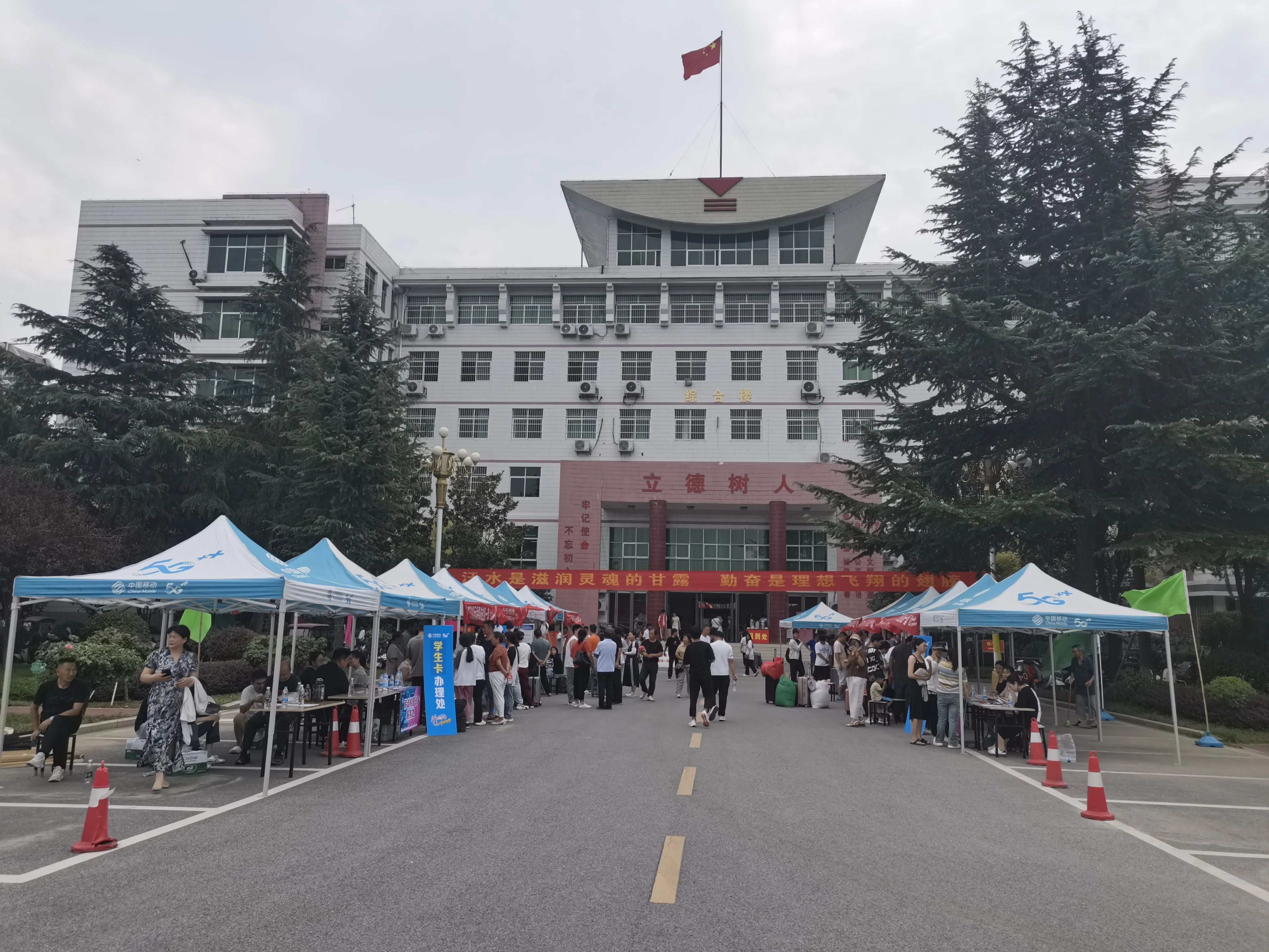 2024年8月26日, 南阳广播电视中等专业学校校园里人头攒动,彩旗飘扬,喜迎新生活动正在进行。