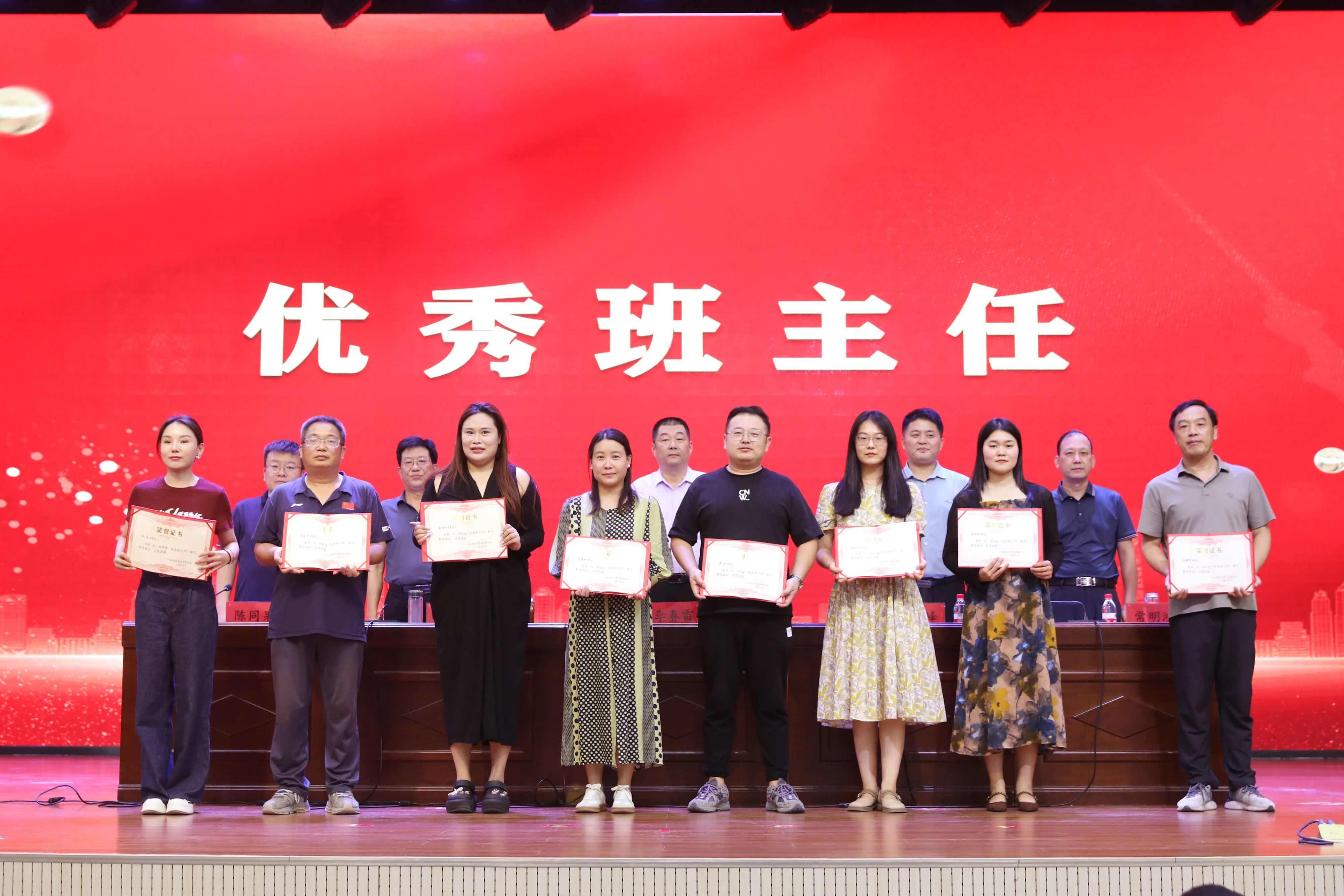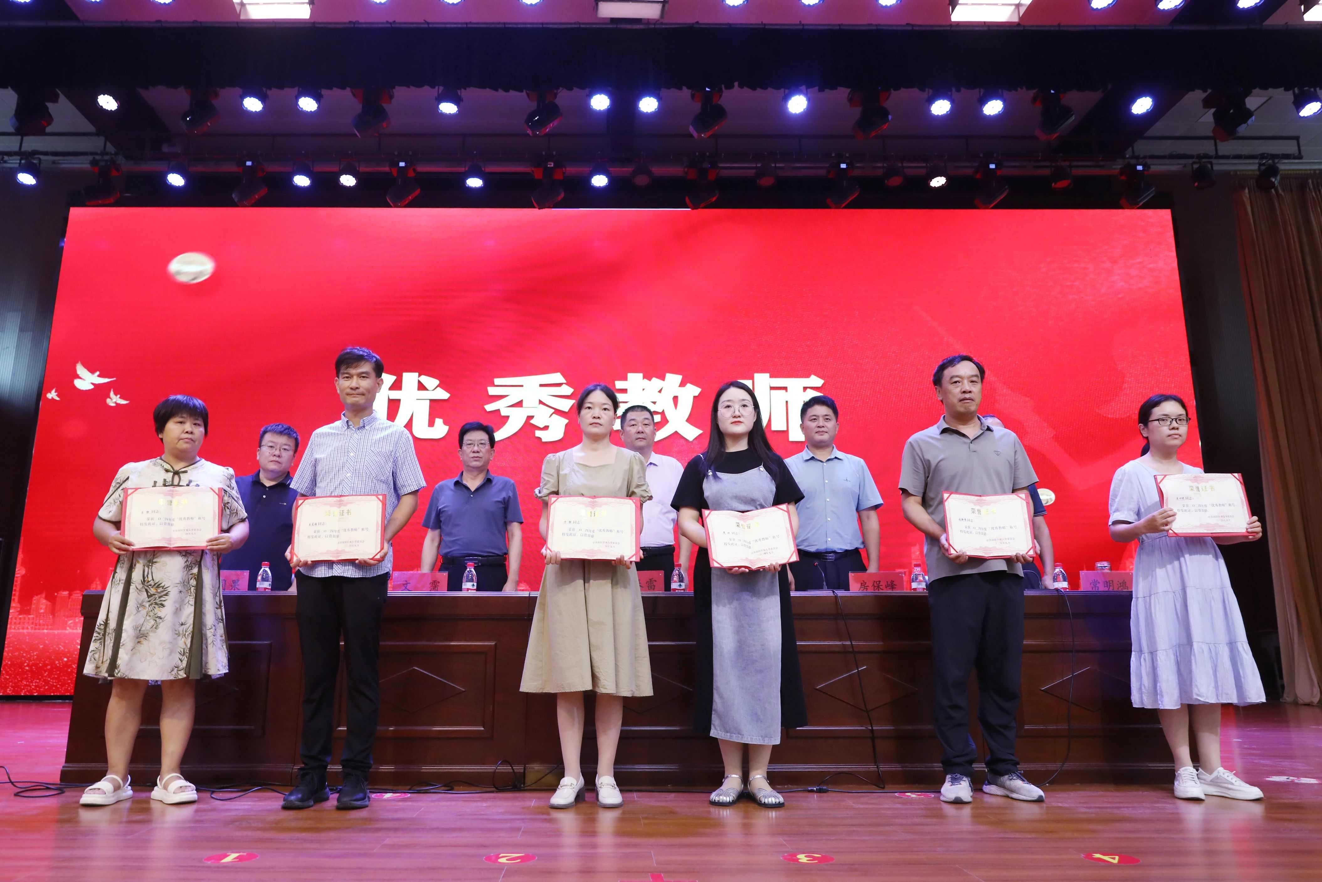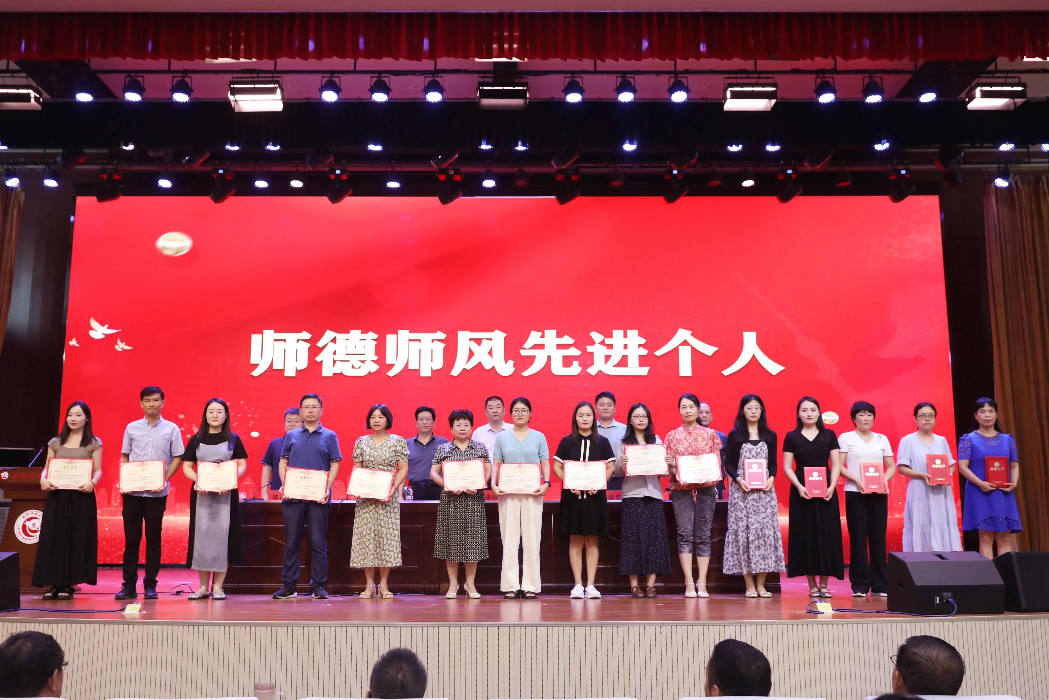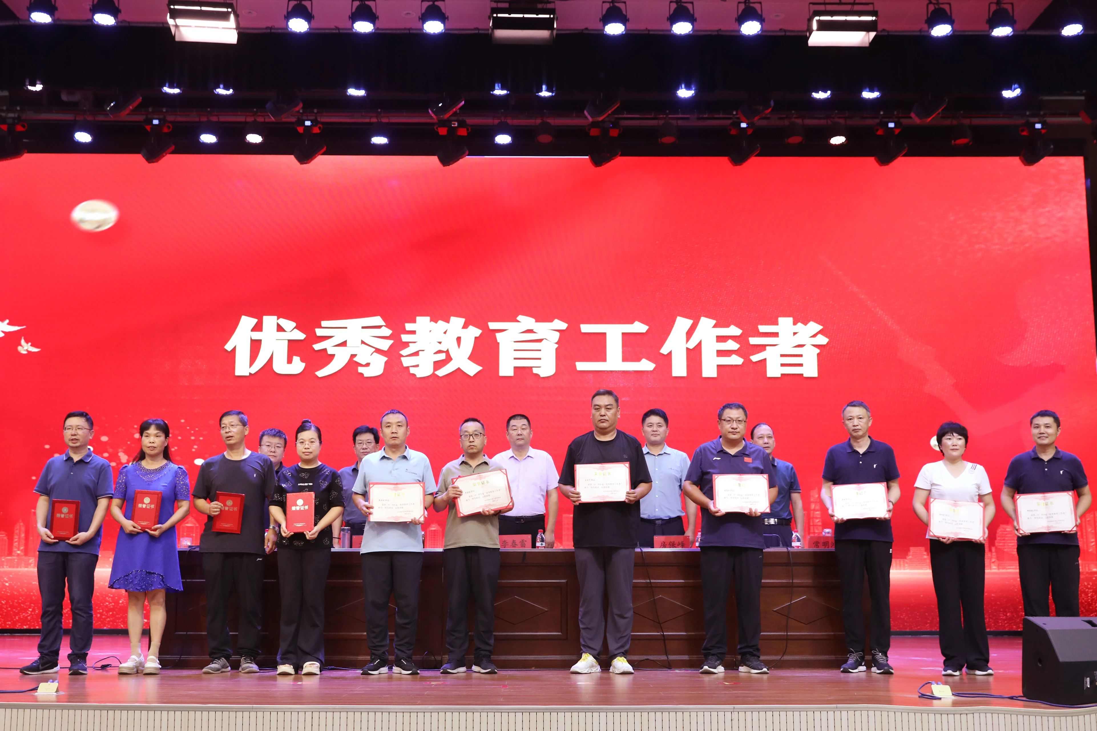 校领导为荣获优秀教师、优秀教育工作者、优秀班主任、师德师风先进个人等41名教职工颁发了荣誉证书。