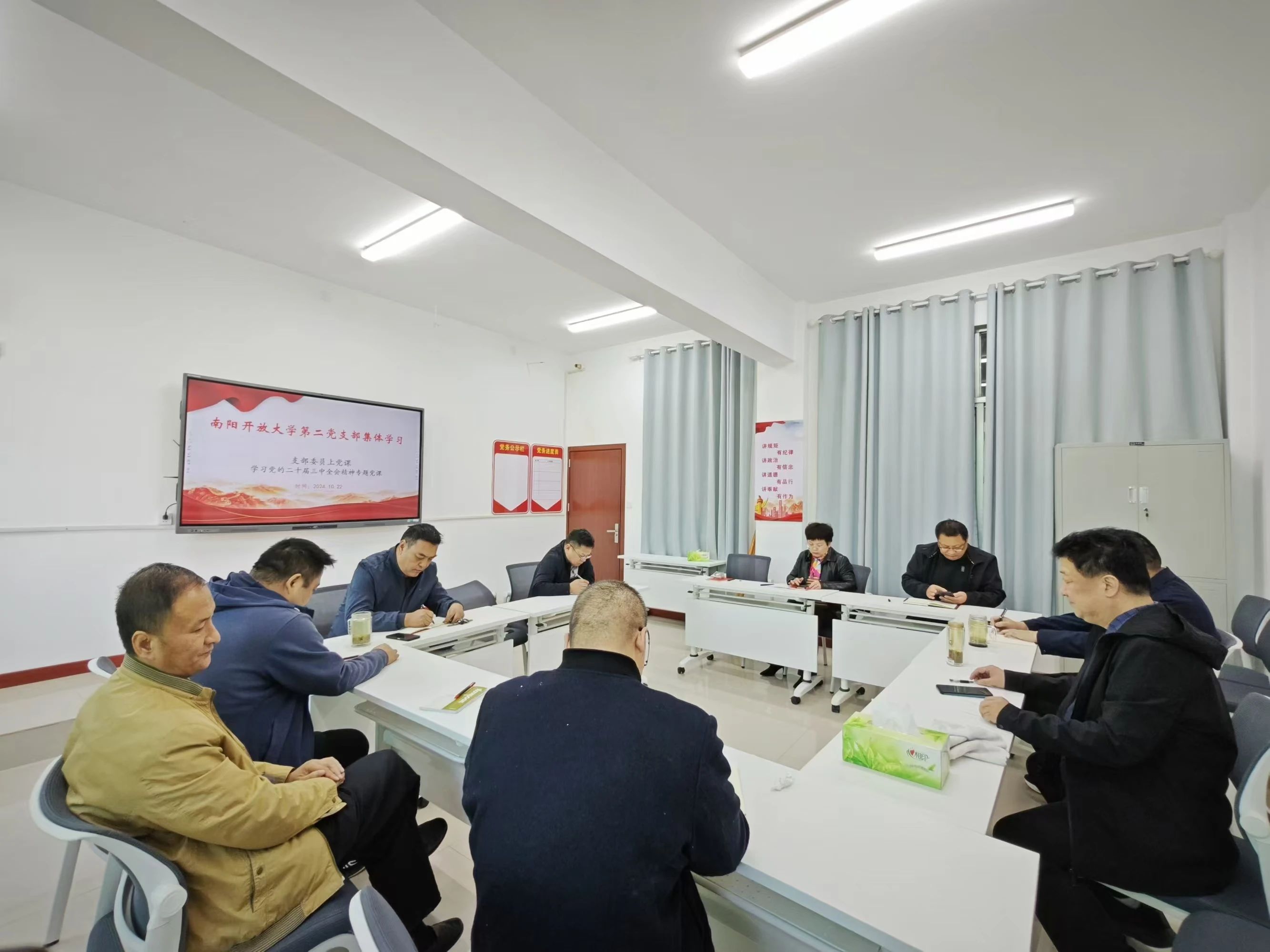 为全面学习贯彻党的二十届三中全会精神,更好地用全会精神统一思想、凝聚共识,10月22日下午,在校党委领导下,南阳开放大学以支部为单位为党员干部上了一场深刻生动的党课,校党委联系各支部深入指导党课教育。