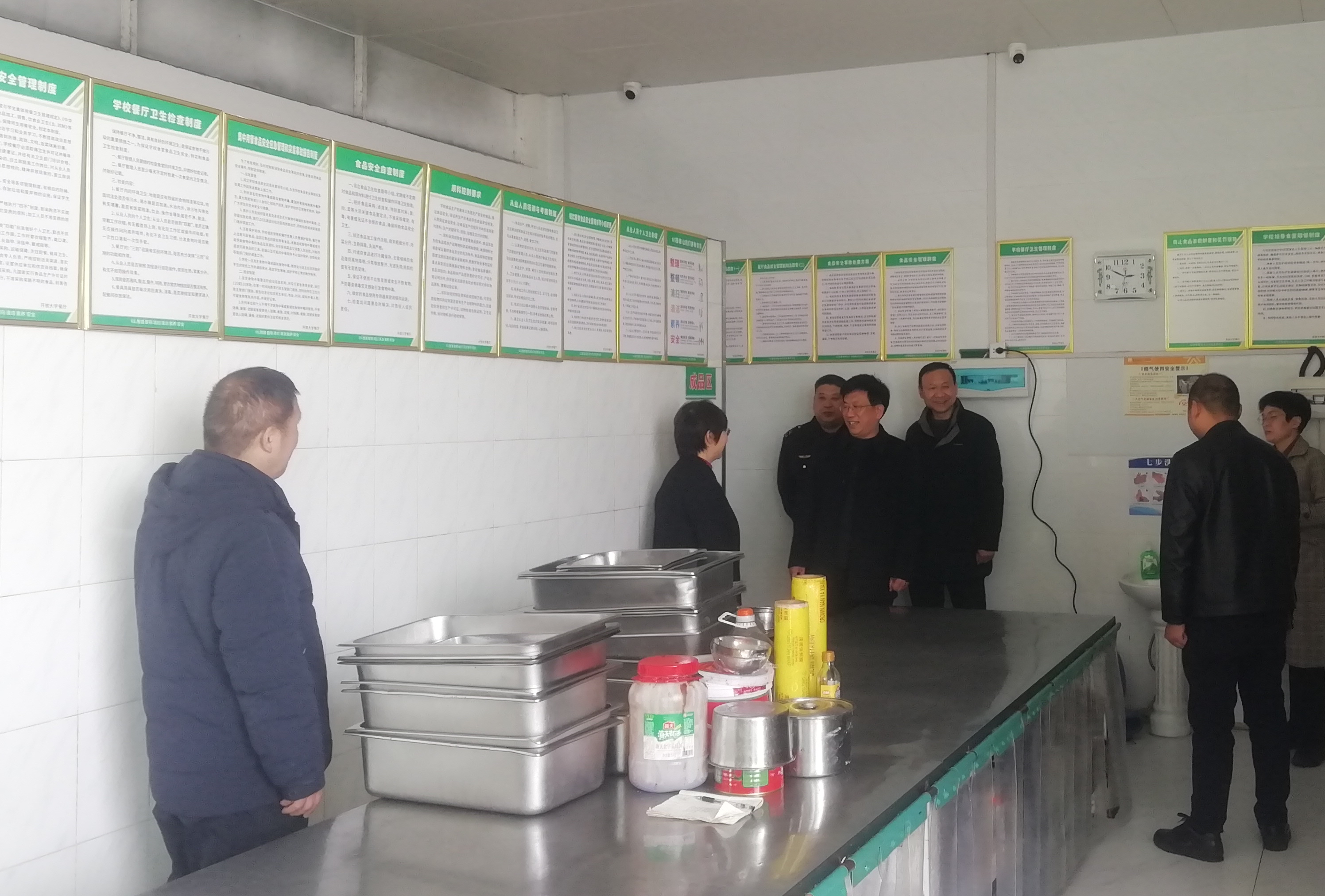 为全面排查学校食品安全风险隐患,督促食堂、小卖部落实食品安全主体责任,保证师生“舌尖上的安全”,2月17日开学第一天,文校长带领总务科人员对学校食堂、小卖部进行了全面检查。