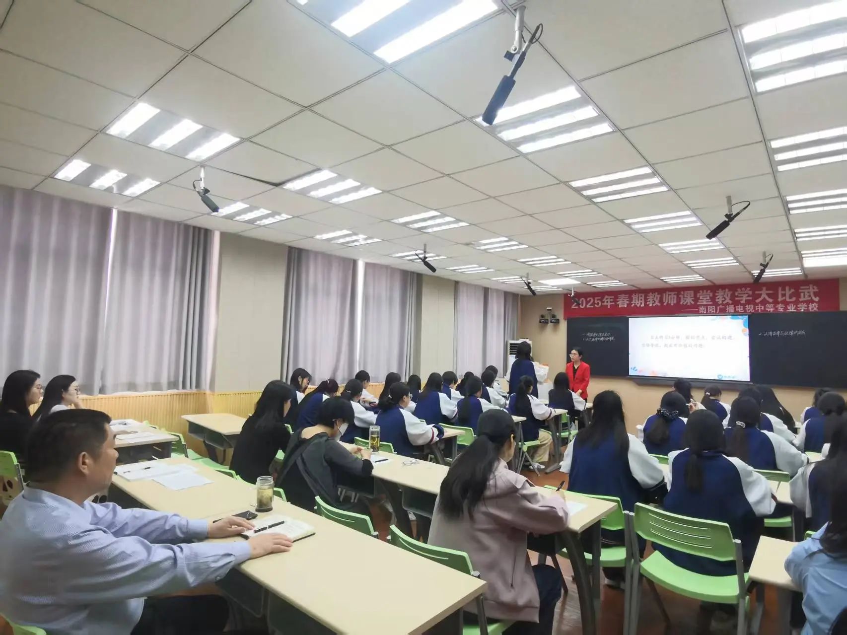 课堂上,王心悦老师通过视频展示、案例分析、小组讨论等多样化教学手段引导学生积极参与互动,展现出扎实的教学功底与专业素养。同学们专注听讲、踊跃发言,课堂气氛生动活跃。李书记全程认真聆听,详细记录授课内容、教学方法及学生课堂表现,深度融入教学场景。课后,李书记与王心悦老师及听课教师进行深入交流。他高度评价本节课内容丰富、案例鲜活,肯定其通过情境创设有效激发学生思维活力的教学特色。李书记强调,思政课是落实立德树人根本任务的关键课程,在培育学生思想政治素养、筑牢理想信念根基方面具有不可替代的作用。全体思政教师要立足学情持续创新教学方法,结合时代元素丰富教学内容,以更具吸引力的课堂形态提升思政教育的针对性和实效性,真正让思政知识入脑入心。他同时要求中专教育部加大思政课建设支持力度,将思政教育有机融入学校教育教学各环节,夯实思想政治教育主阵地。同期,李书记还专门深入新入职教师课堂,听取了青年教师的授课情况。听课过程中,他细致观察新教师的教学流程、师生互动及课堂把控能力,对新教师展现出的教学热情和创新尝试给予鼓励,同时针对教学细节提出具体指导建议。李书记特别指出,青年教师是学校教育事业的未来,希望大家以“万名教师大比武”为契机,主动锤炼教学基本功,虚心向资深教师学习,在实践中积累经验、提升能力,尽快成长为学校教学的骨干力量。此次校领导深入课堂听评思政课,既是对“万名教师大比武”活动的积极响应,也体现了学校党委对思政课建设和教师队伍培养的双重重视。中专教育部表示,将以此次活动为契机,重点强化集体备课机制,凝聚教学智慧,着力提升教师队伍专业能力,持续深化教学改革,创新课堂模式,致力于打造有深度、有温度、有实效的思政课堂,推动我校思政教育教学质量迈向新台阶。