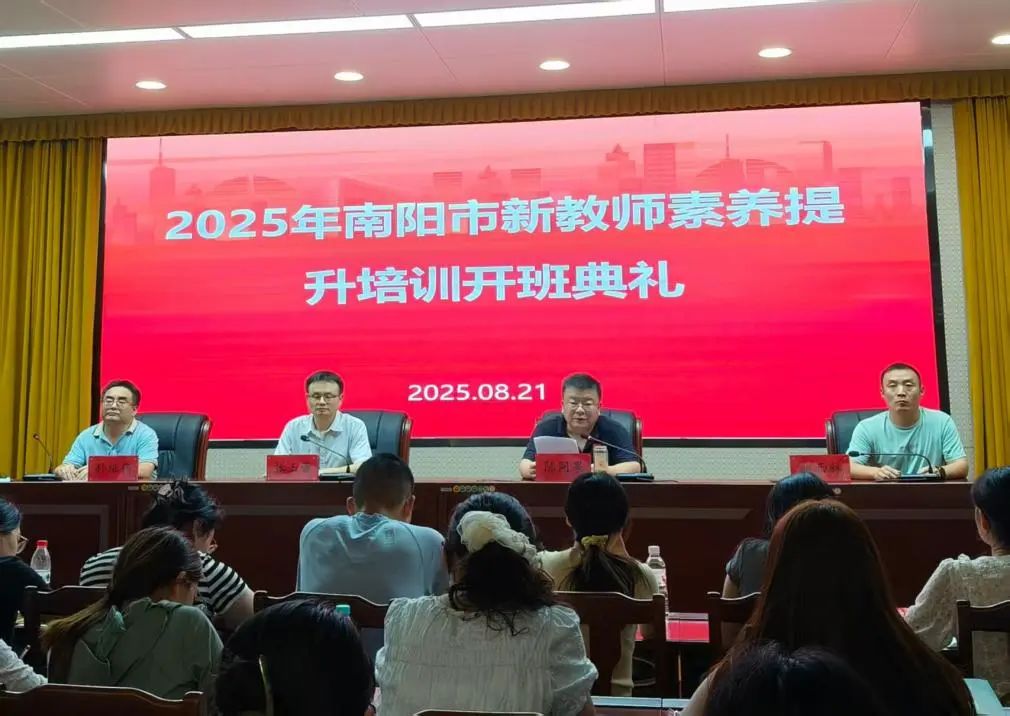 8月21日上午,南阳市新教师素养提升培训在南阳开放大学正式开班。此次培训旨在加强教师队伍建设,提升新教师专业素养,为南阳市教育事业高质量发展注入新动力。南阳市教育局教师工作科科长张玉蕾、南阳开放大学副校长陈同果、南阳开放大学继续教育部副主任赵西林出席开班仪式。