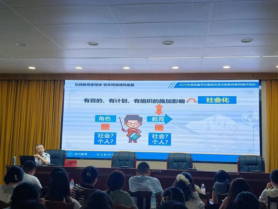 开班仪式结束后,南阳师范学院张鸿军教授为新教师们带来了《弘扬教育家精神,筑牢师德师风根基》专题讲座。张教授从教育家精神的内涵、师德师风建设的重要性以及如何在教育实践中践行等方面进行了深入解读,通过生动案例和理论阐述,引导新教师深刻理解教育家精神,强化师德师风意识,为今后的教育教学工作奠定坚实基础。