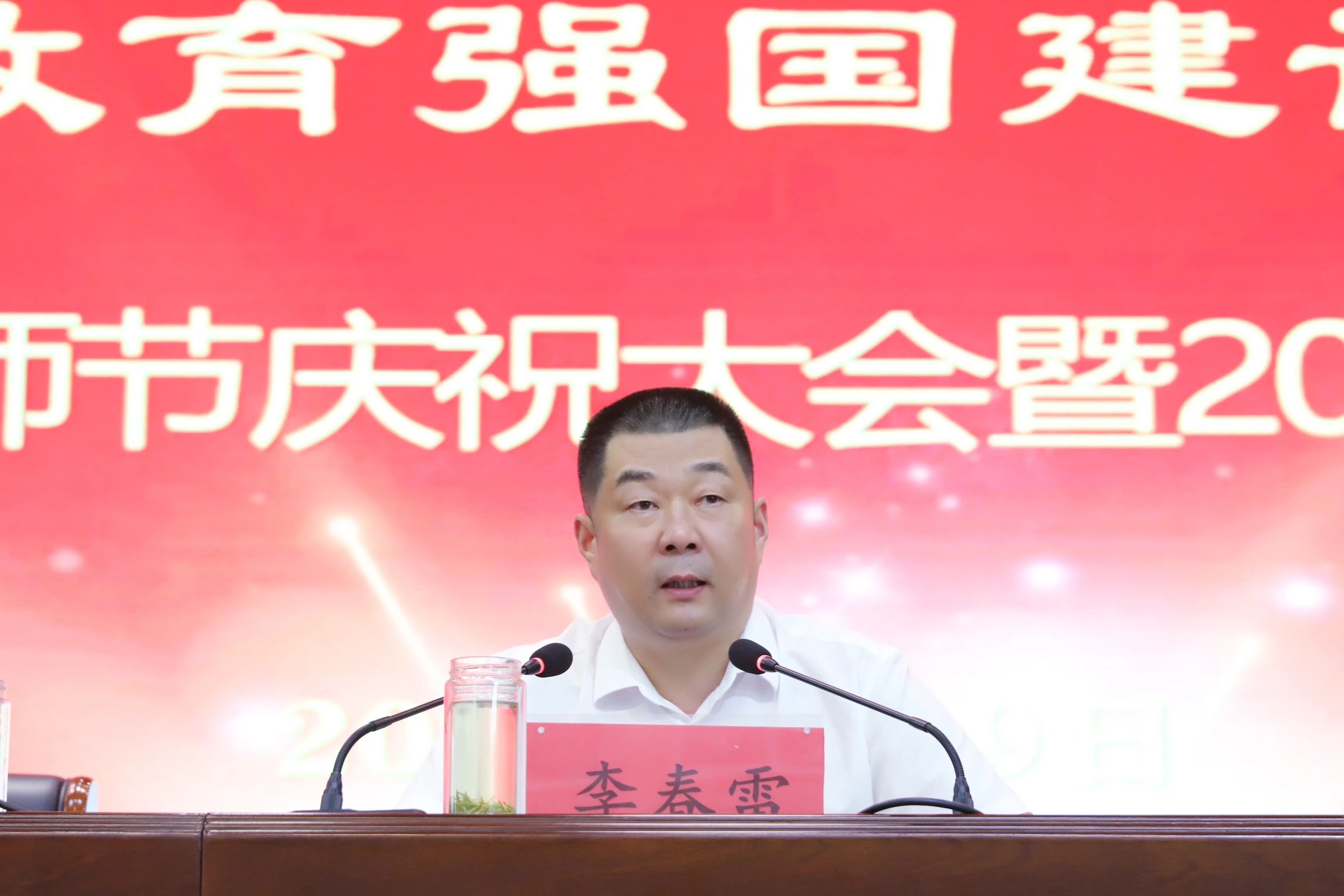 党委书记、校长李春雷代表校党委,向在教育教学、管理服务一线的全体教职员工致以节日的诚挚问候和崇高敬意,向受到表彰的先进个人表示热烈的祝贺。会上,李书记从办学质量、师资队伍、服务保障等方面总结了学校春期发展成果。同时,向全体教职工提出四点要求:一是要爱岗敬业、弘扬师德,塑造新时代教师的良好形象;二是要刻苦钻研、严谨治学,不断提升教书育人本领;三是要勇于创新、积极进取,激发学生创新思维;四是要甘为人梯,关爱学生,培养健全的人格。并向同学们提出希望,希望同学们遵规守纪,争做文明青年;锤炼本领,勇敢追逐梦想;志存高远,勇担时代使命。